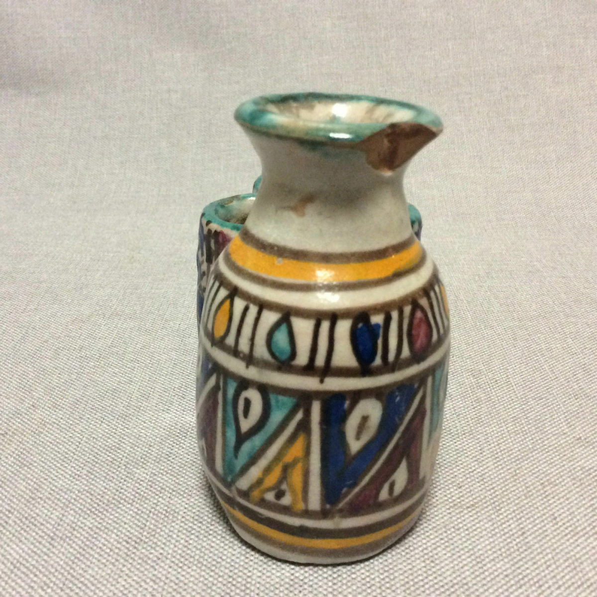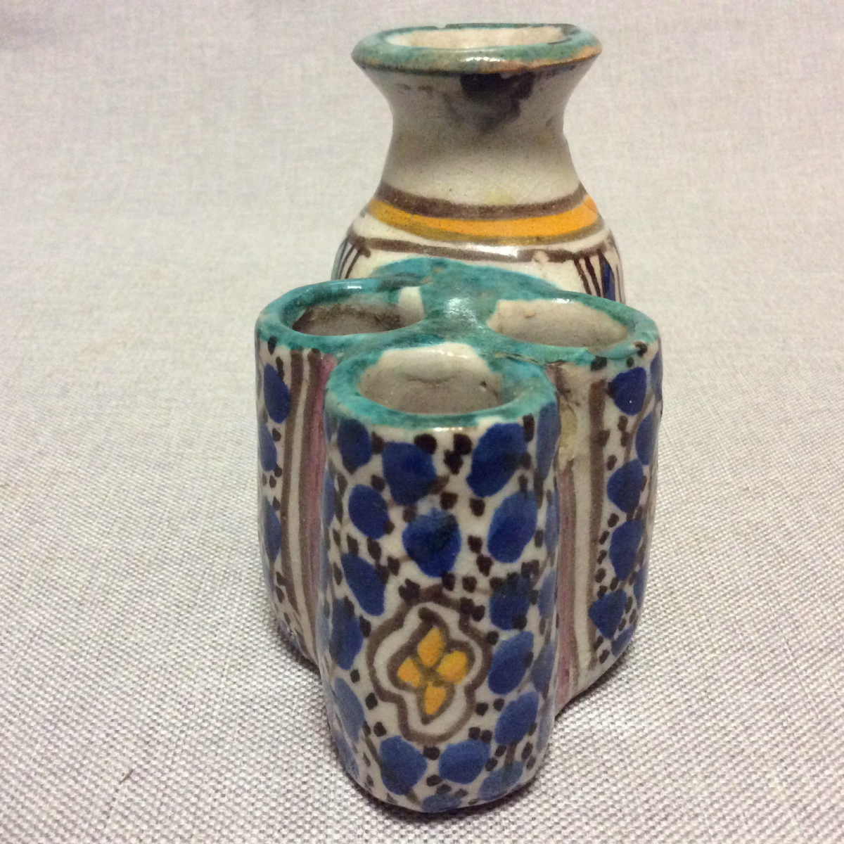 Plat Mokhfia Fès Maroc XVIIIe faïence polychrome à décor de mille pattes Afrique artculture6 vous propose plat mokhfia fès Maroc XXVIIIe faïence polychrome. Hauteur 8 cm, ...