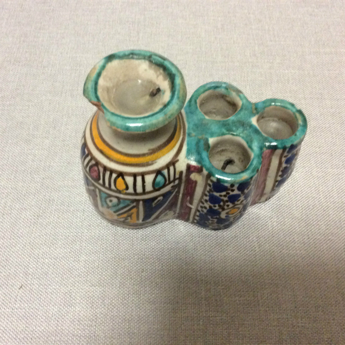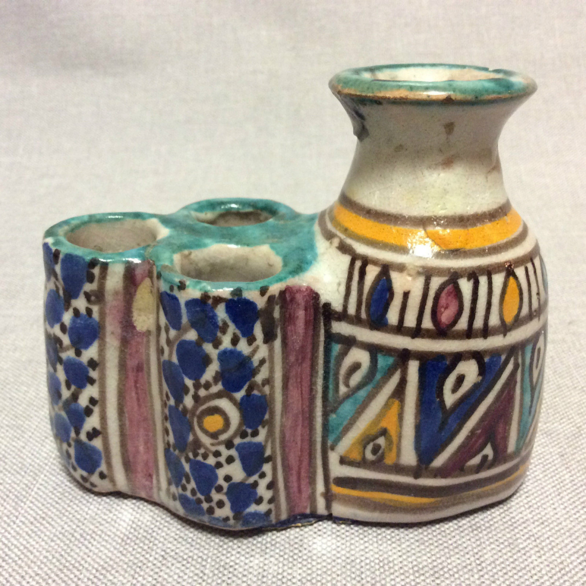 Encrier à 9 godets polychrome d'enlumineur XVIII début XIX Maroc Fès Je vous propose cette encrier Encrier à 9 godets polychrome d'enlumineur XVIII début XIX M...