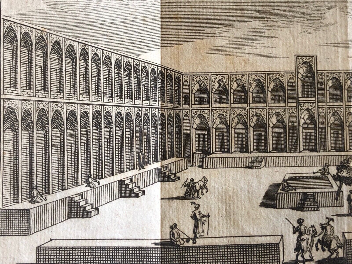 Iran Kashan Kachan. Le caravan-seray par Guillaume-Joseph Grelot 1686