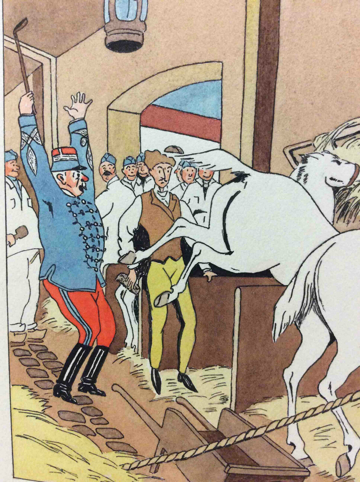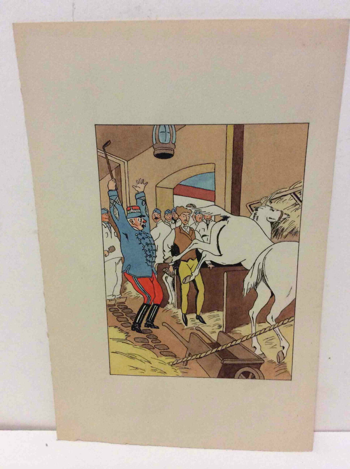 Pochoir. Cavalier illustrateur ? circa 1910. Officier Hussard, chevaux Tarbes.