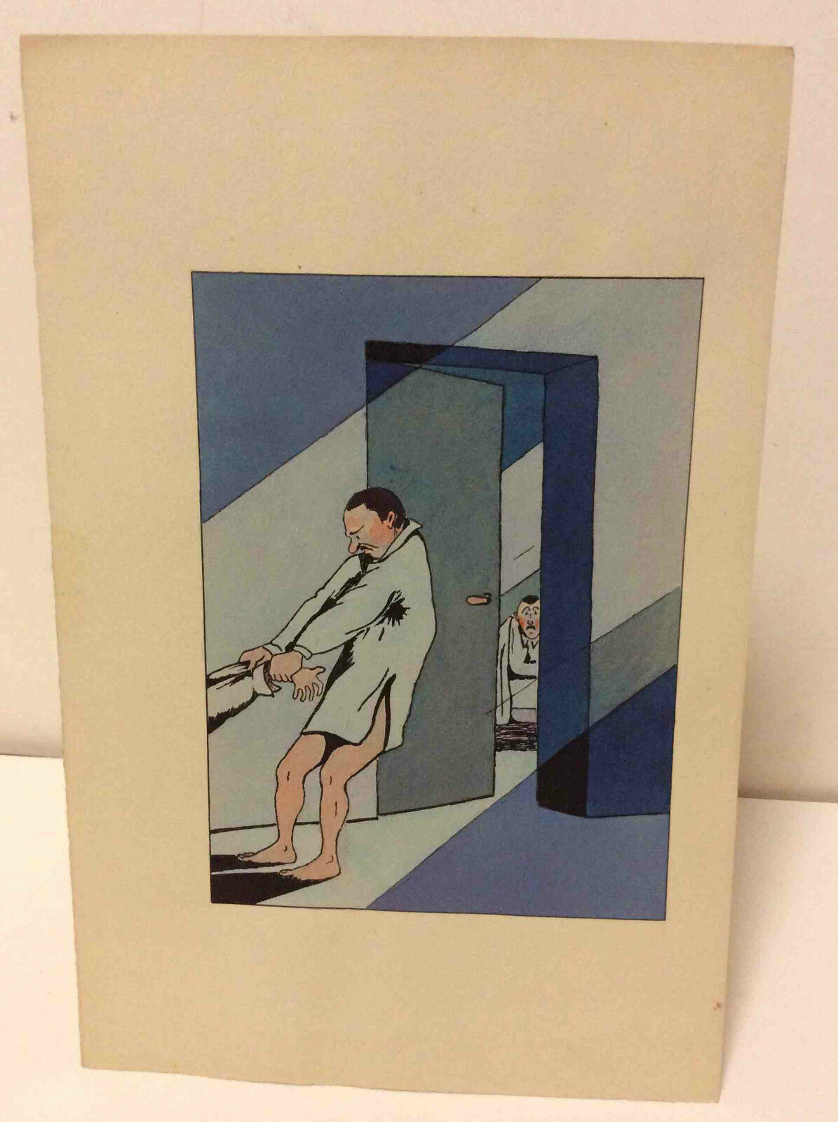 Je vous propose ce pochoir représentant un petit problème de chambrée militaire vers 1910. Sur papier fort beige Atelier" T.L. et Co, Paris. Non signée, mais de grande qualité. La feuille fait 24,8cm par 16,5cm, la peinture seule 15,2cm par 11,2cm. Travail sublime!