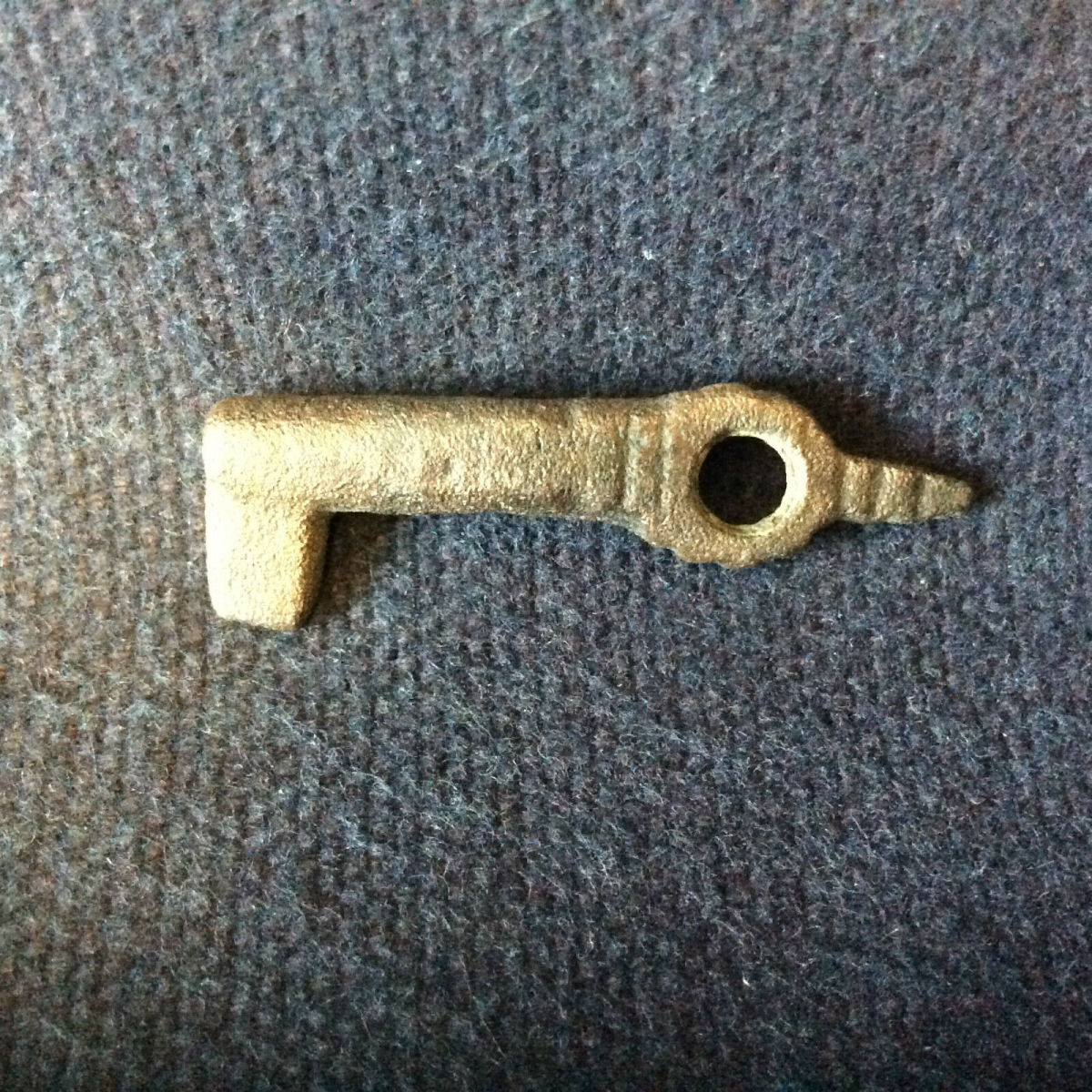 Petit christ d'applique. Pièce ancienne non identifiée. Étain ou plomb. Je vous propose ce petit Christ d'applique en étain ou plomb ? à patine noire. 11,1 cm de ...