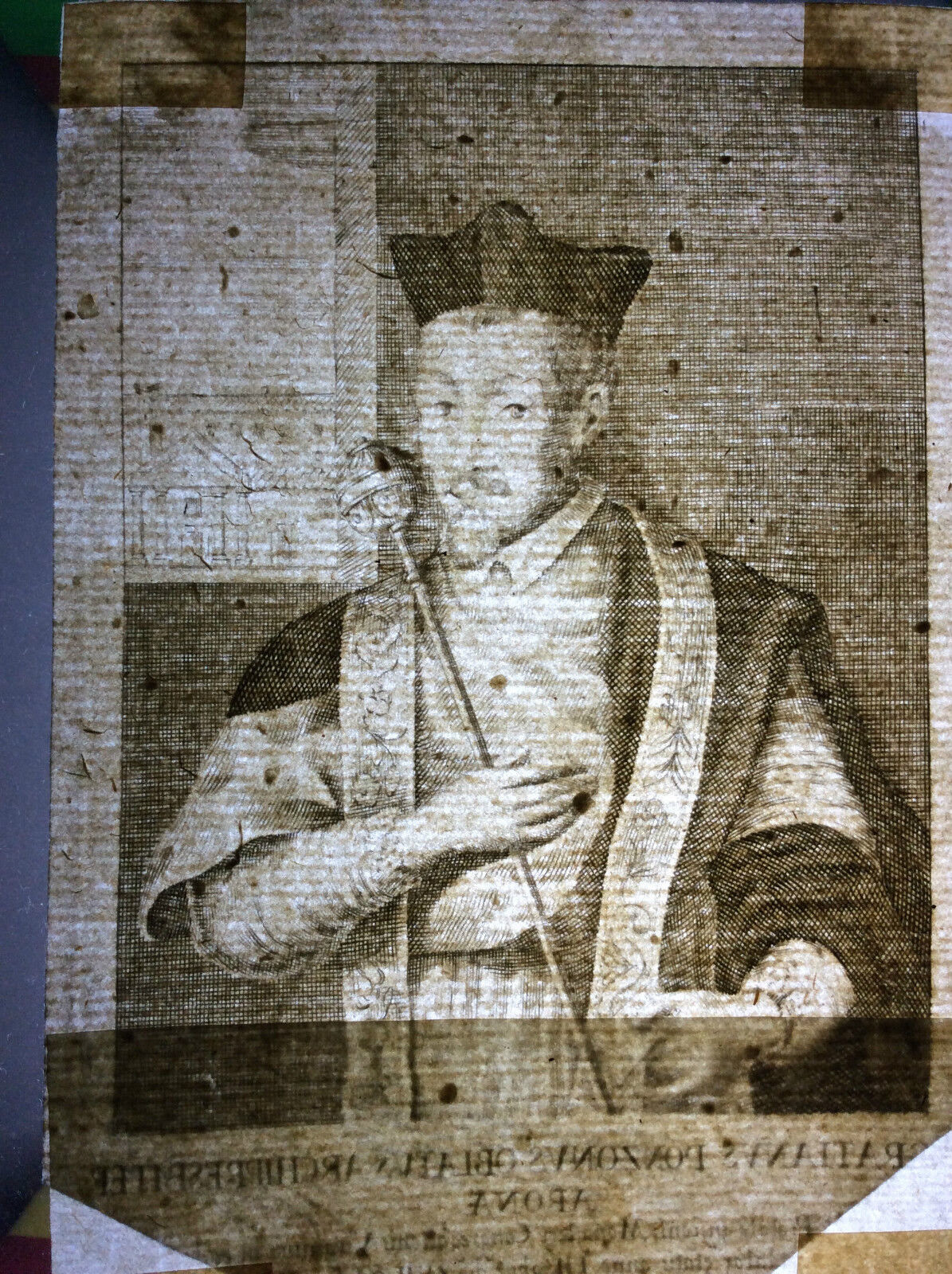 Je vous propose cette gravure au burin circa 1650. Elle représente Gratinais Ponzonus Oblatus Archipresbiter Arona. Aucune autre pièce référencée à ma connaissance ! Sur papier vergé, ombré. La feuille fait 153 millimètres par 107 millimètres. Pièce restaurée au XVIII ou XIXe sur le bas (hors gravure sur les deux côtés de la légende). Cette pièce est issue d'une collection hors du commun de pièces rares, elle n'a jamais été vue depuis très très longtemps, je sors de l'ombre. Le trait est aux grands érudits ! Pour collection ou musée de qualité !
