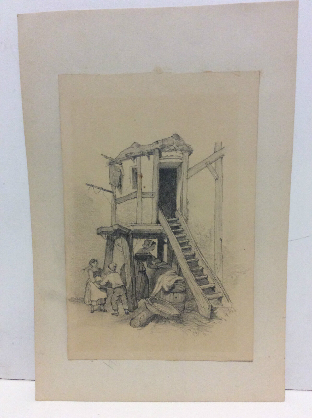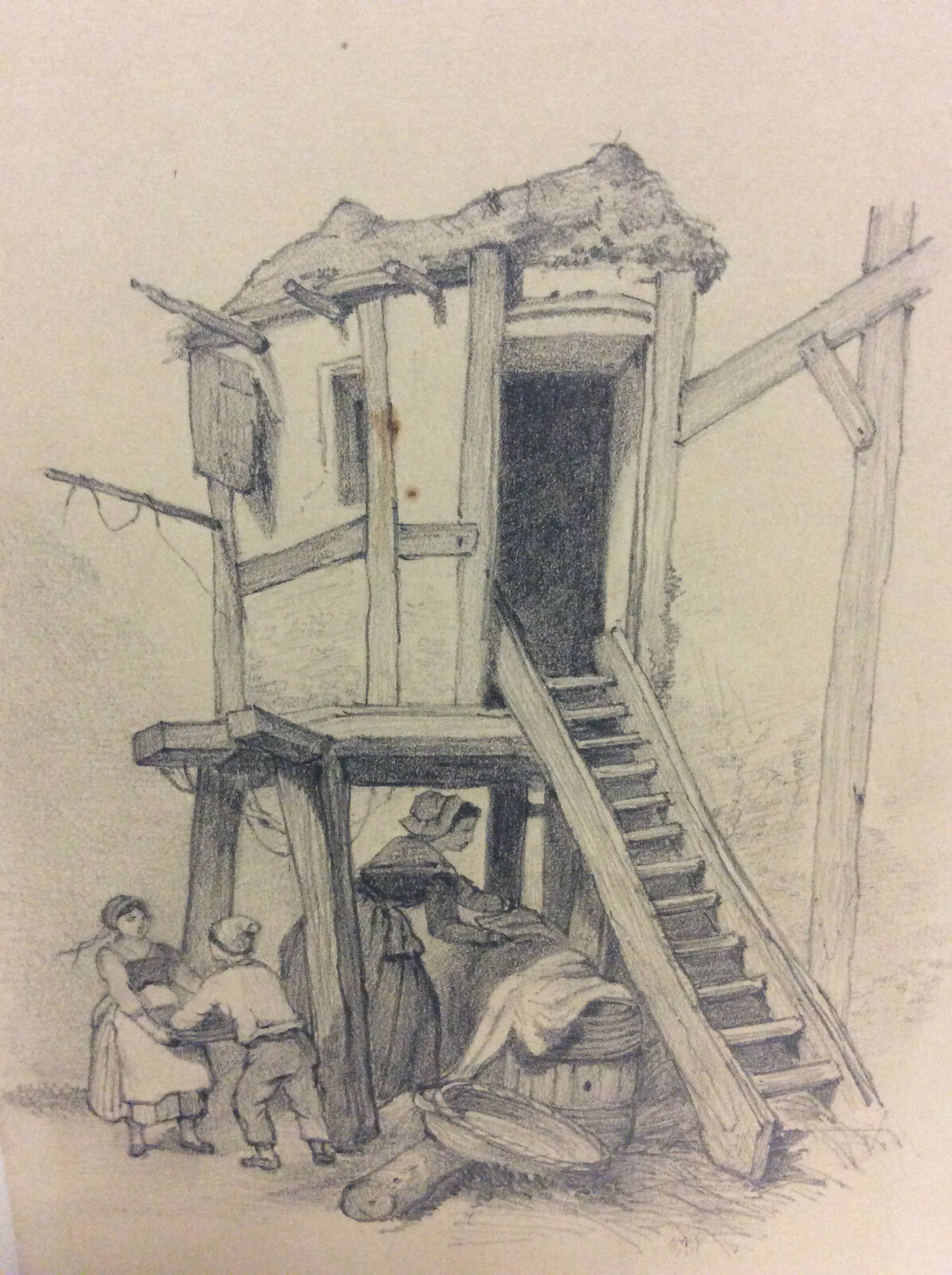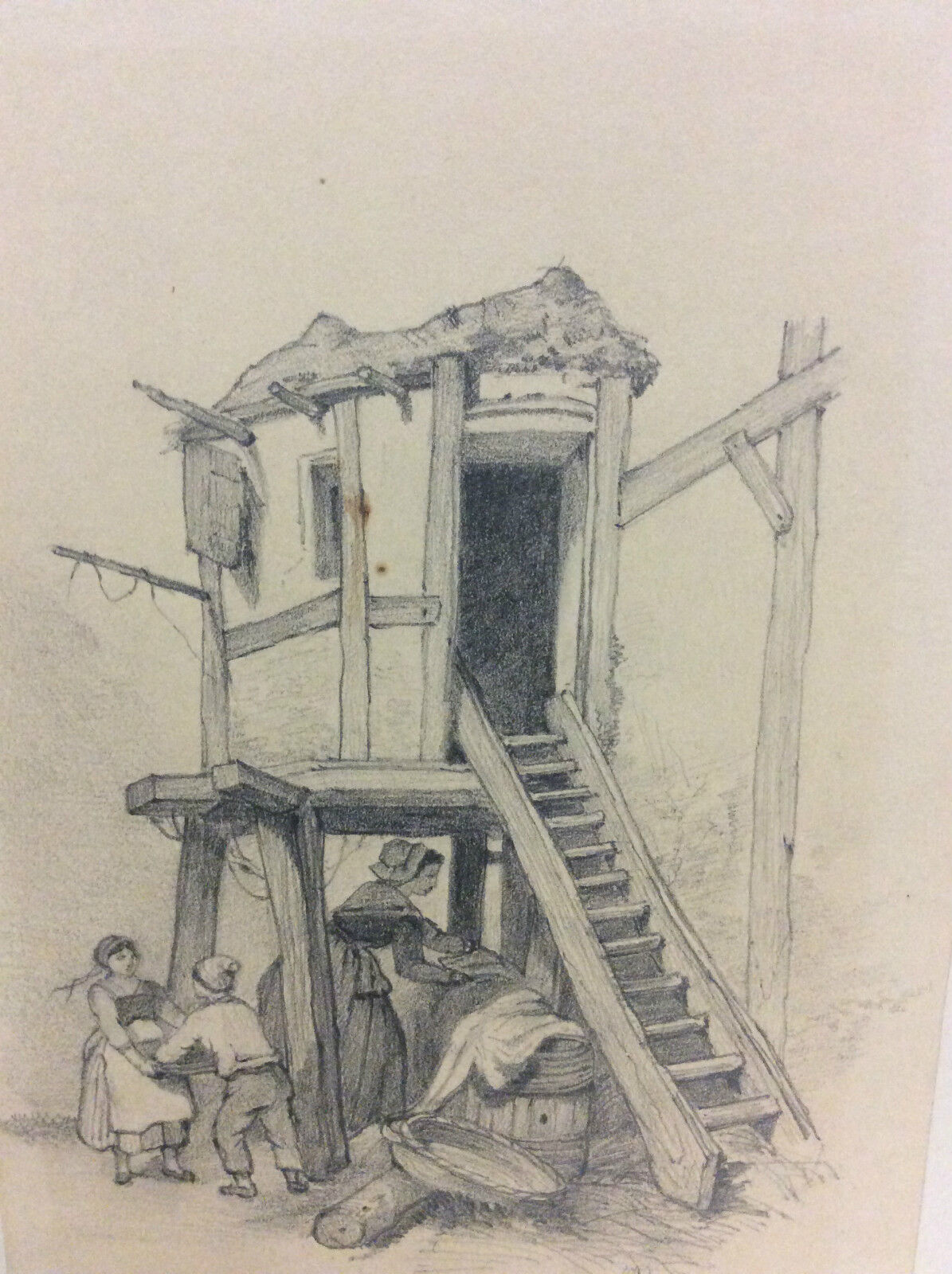Corvée de bois dessin fusain fixé de 1874 anonyme chauffage Bucheron Je vous propose ce dessin au fusain fixé de 1874. Corvée de bois dessin anonyme. La feui...
