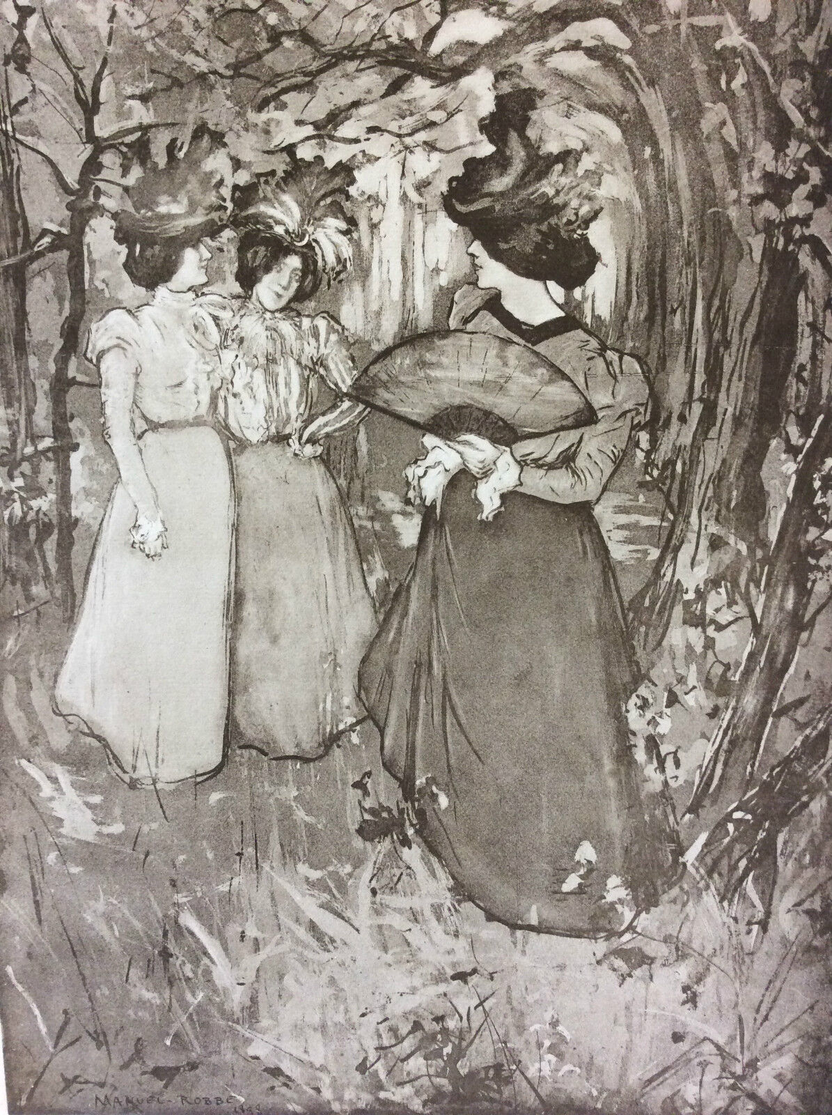 Manuel Robbe. Le Menuet d'automne. Lithographie originale 1898. L'estampe Moderne.