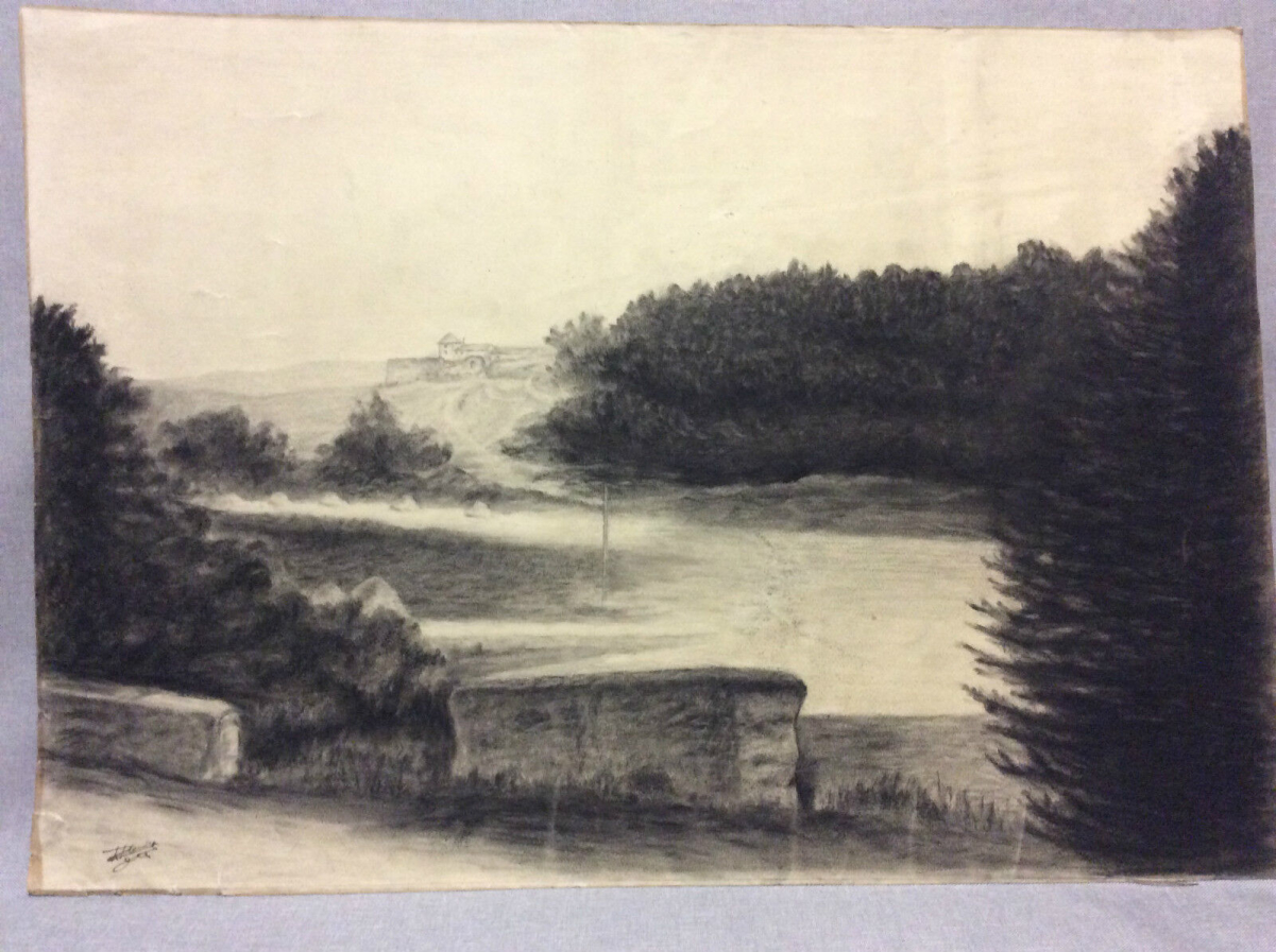 Jolie gravure en pointe sèche paysage hivernal France Je vous propose cette pointe sèche décrivant un paysage d'hivers. Signature illisible au c...