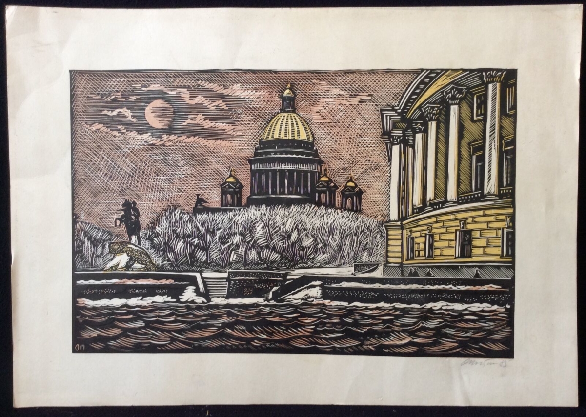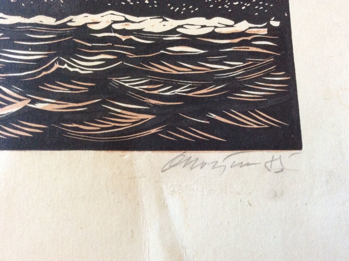 Je vous propose cette estampe en technique de bois gravé (sur papier) une œuvre portant une signature au crayon en bas à droite illisible ? La feuille fait environ 49,8 cm par 55 cm. La gravure seule fait environ 39 cm par 25 cm. Quelques défauts sur les marges (loin de la gravure) qui partiront à l'encadrement. Petit prix à saisir !