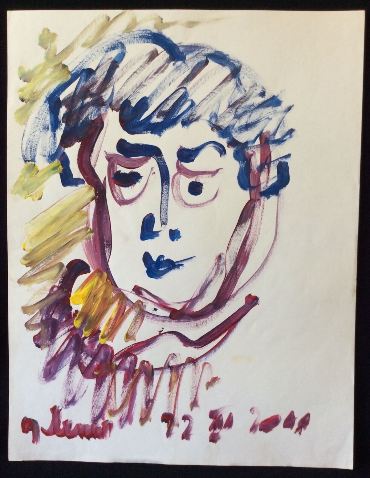 Art brut portrait d'homme par Joanna Räbiger 1987 acrylique sur toile France Je vous propose cette acrylique sur toile. 23 cm par 16 cm.