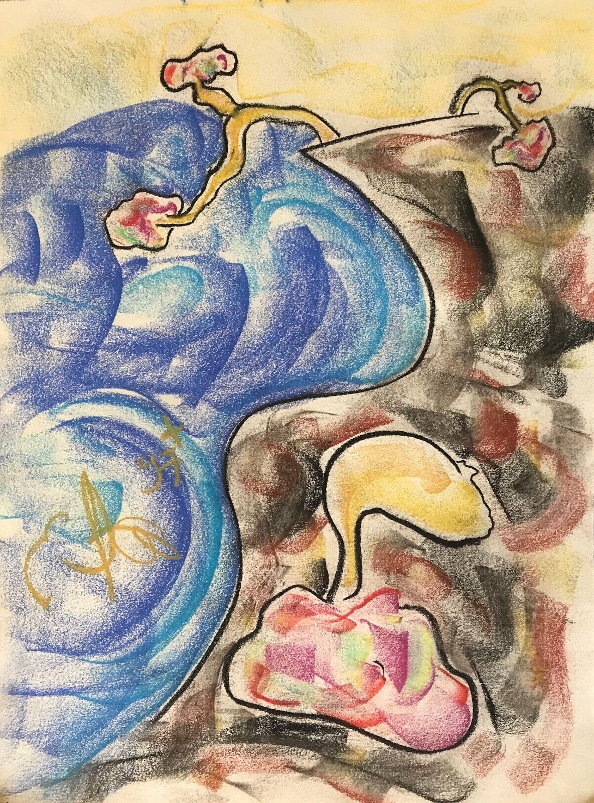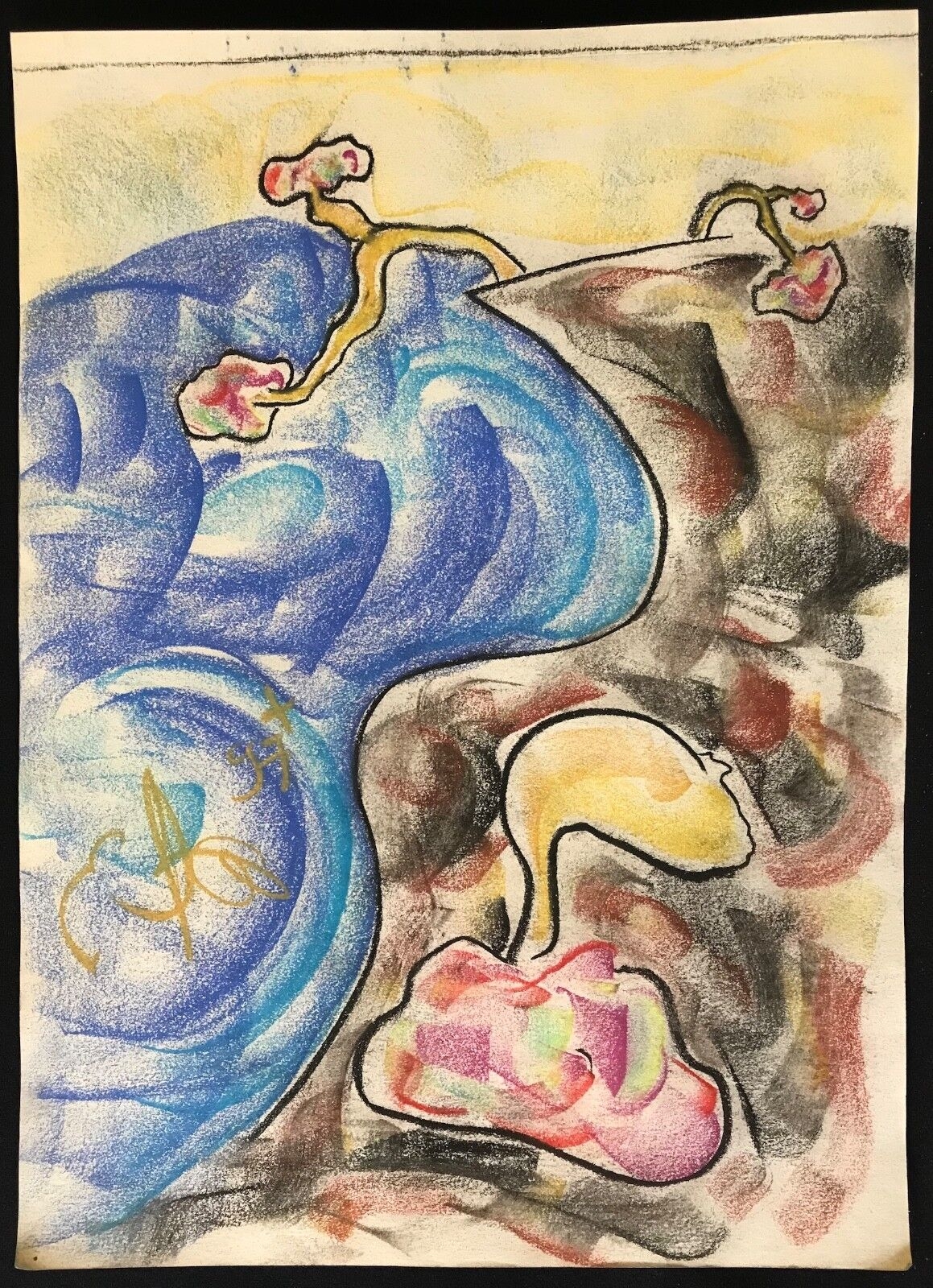Pastel art contemporain signé illisible ? 1997 abstraction abstrait . Je vous propose ce pastel sur papier signé illisible en bas ? 41 cm par 29,5 cm. Très bell...
