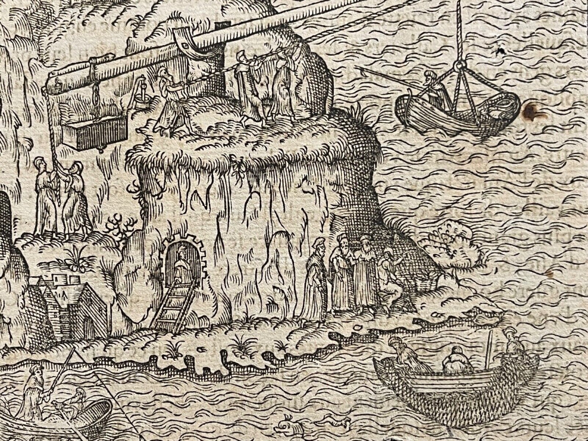 Je vous propose cette gravure : Grue de l'ile kalogeros (Crète) par André Thevet (1504-1592). Gravure en xylographie vers 1560 sur papier vergé.