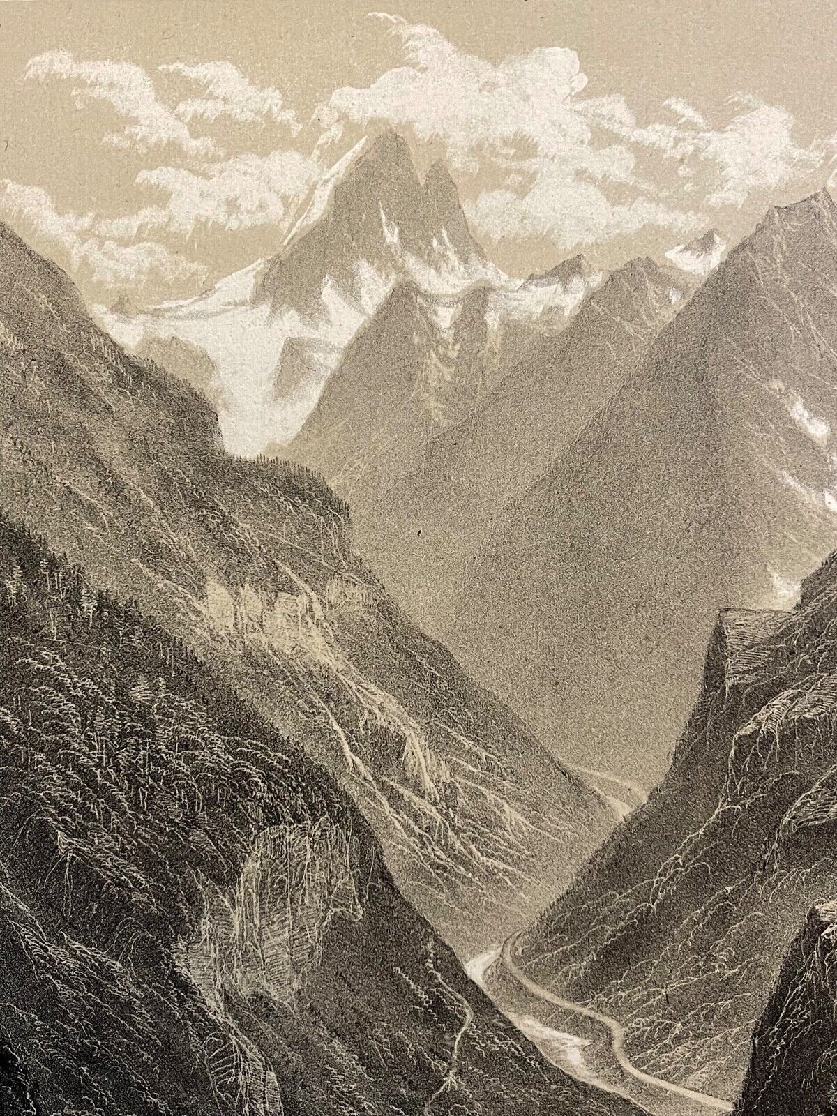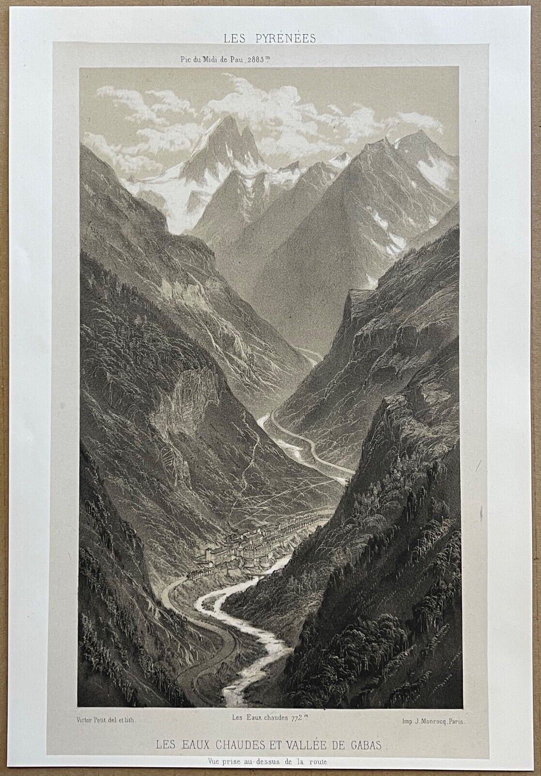 Vallée du Gabas Pyrénées-Atlantiques lithographie c 1860 France