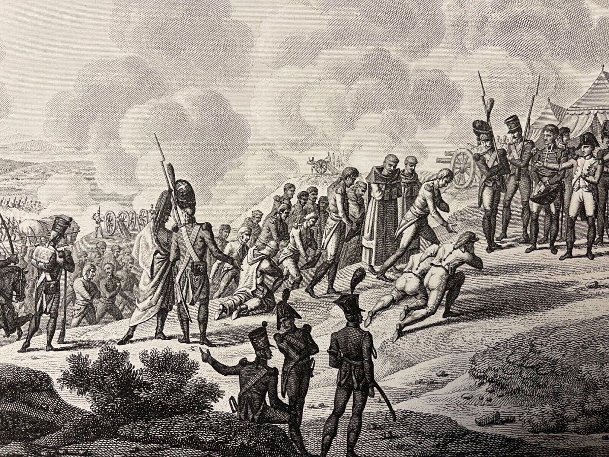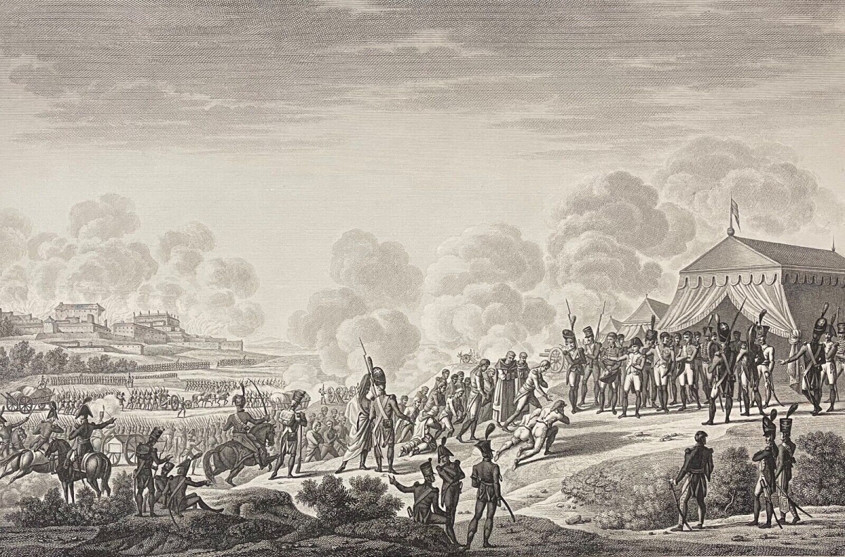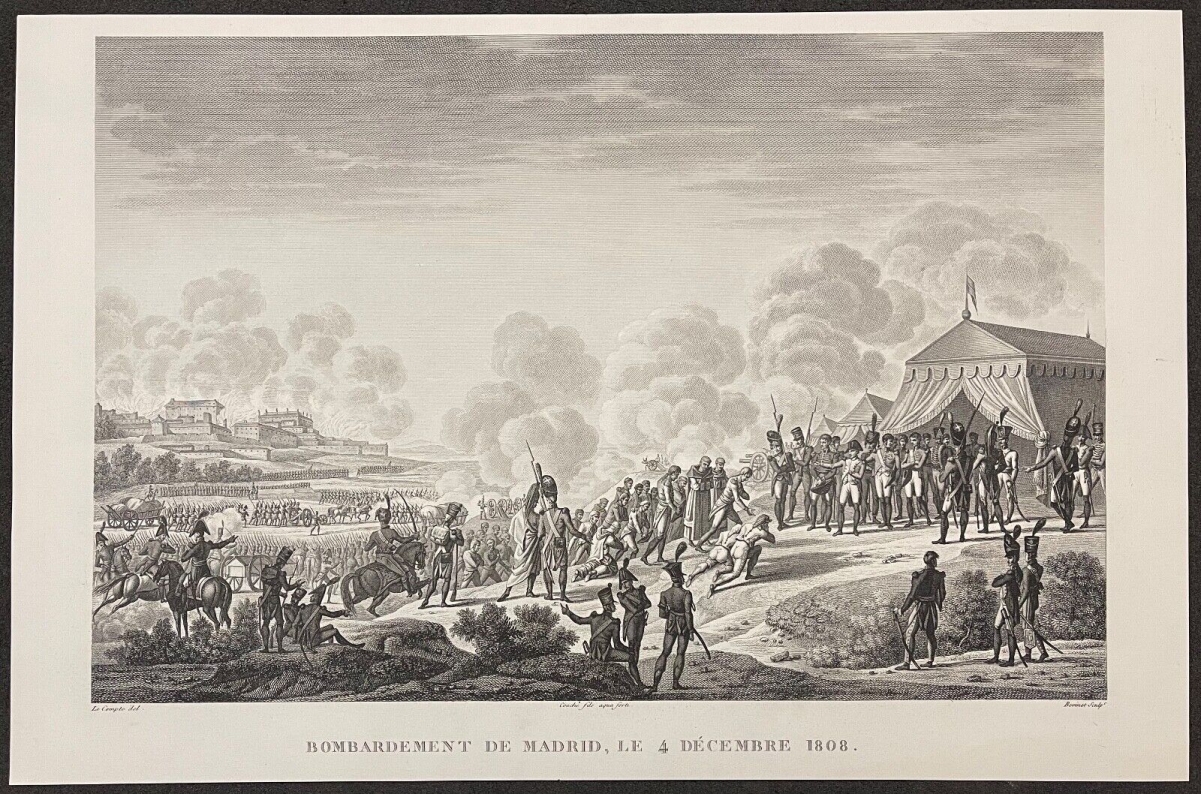Je vous propose cette gravure : Bombardement de Madrid de 1808 par les armées de Napoléon Bonaparte. Tirage original de 1850. La feuille fait 44 cm par 28,8 cm. La gravure seule fait 37,8 cm par 25 cm. Jolie pièce à petit prix !