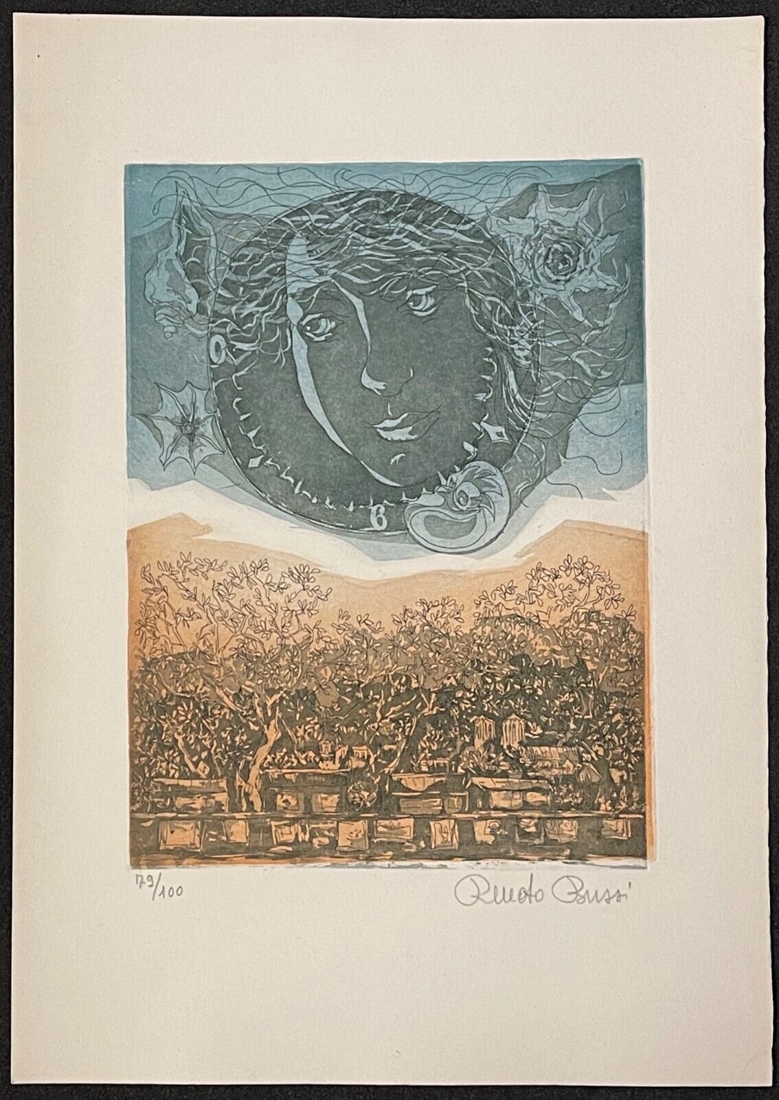 Renato BUSSI 1926-1999 Italie eau-forte signée au crayon. Je vous propose cette eau-forte 49,5 cm par 35 cm, la gravure seule fait 33 cm par 24,5 cm...