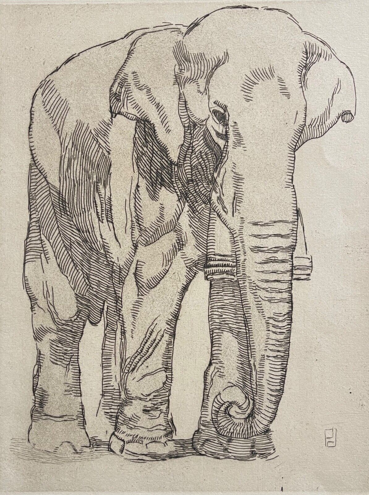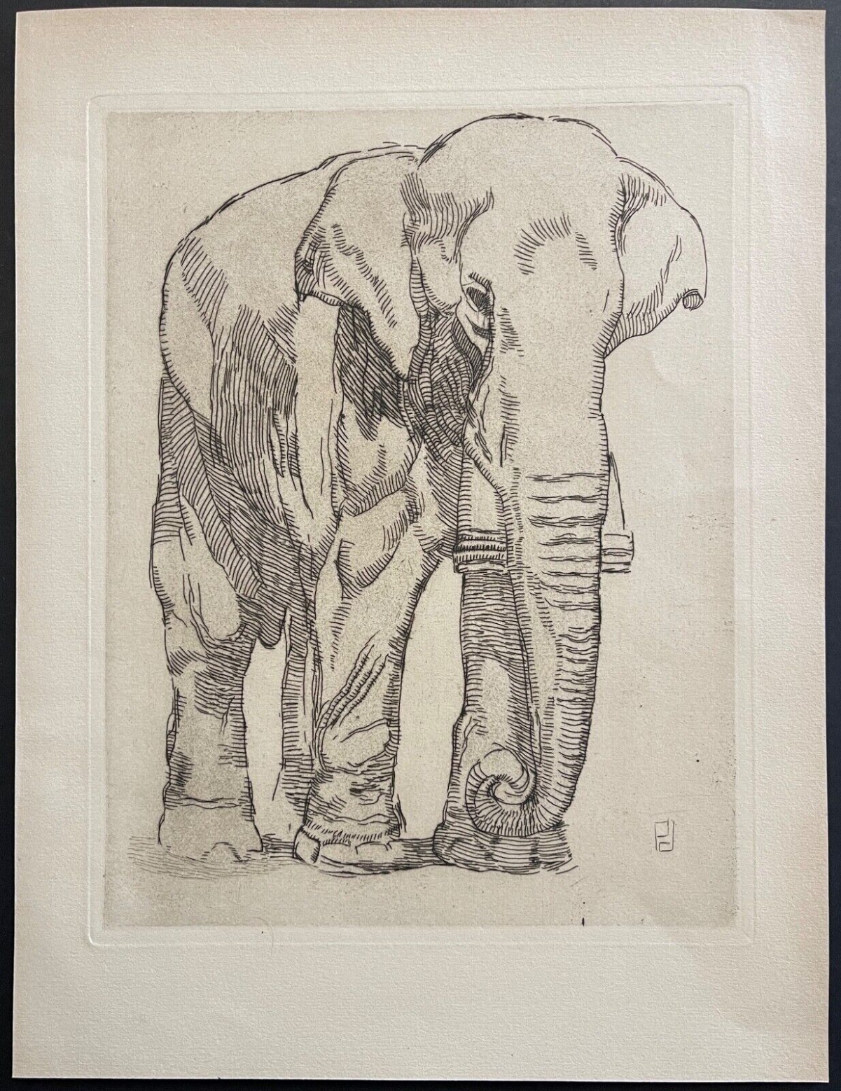 Paul Jouve (1878-1973) Éléphant gravure en pointe sèche