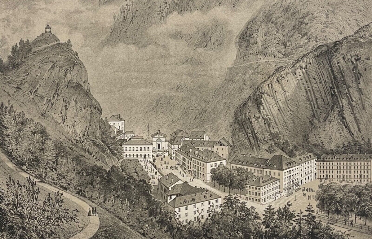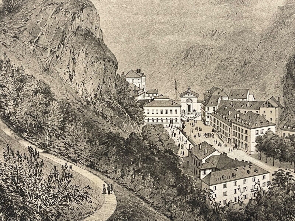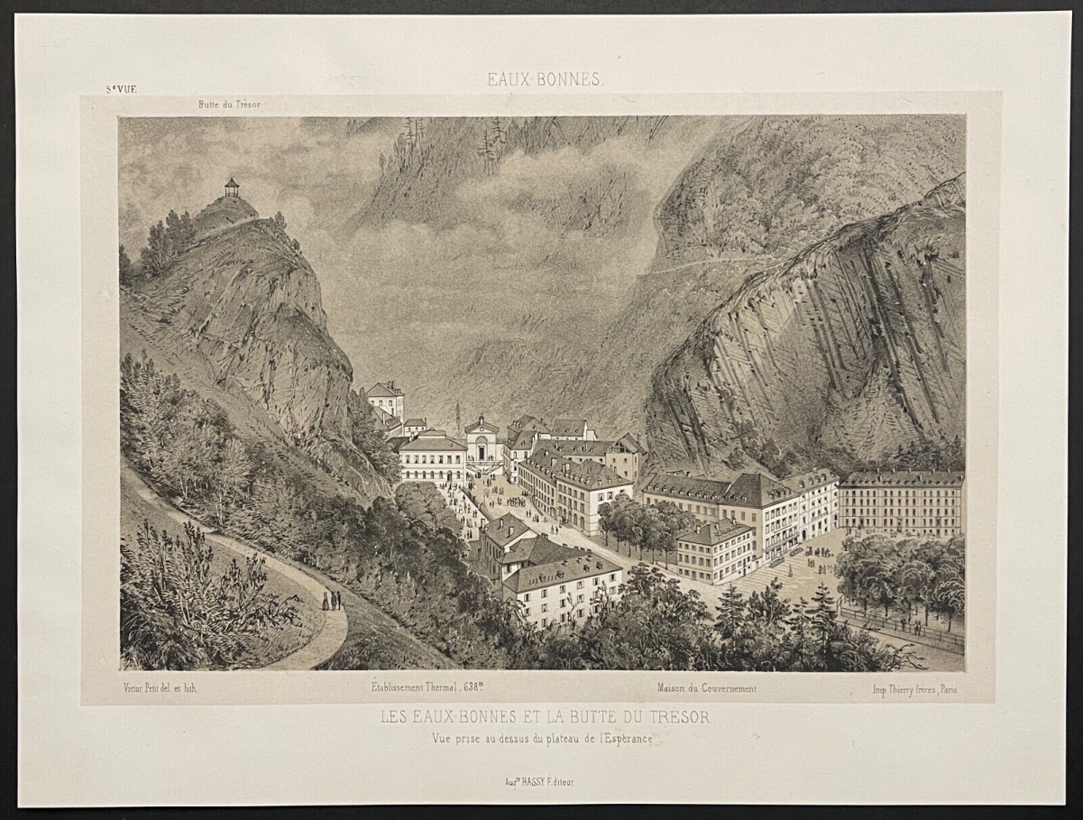 Eaux-Bonnes Pyrénées-Atlantiques lithographie de 1880