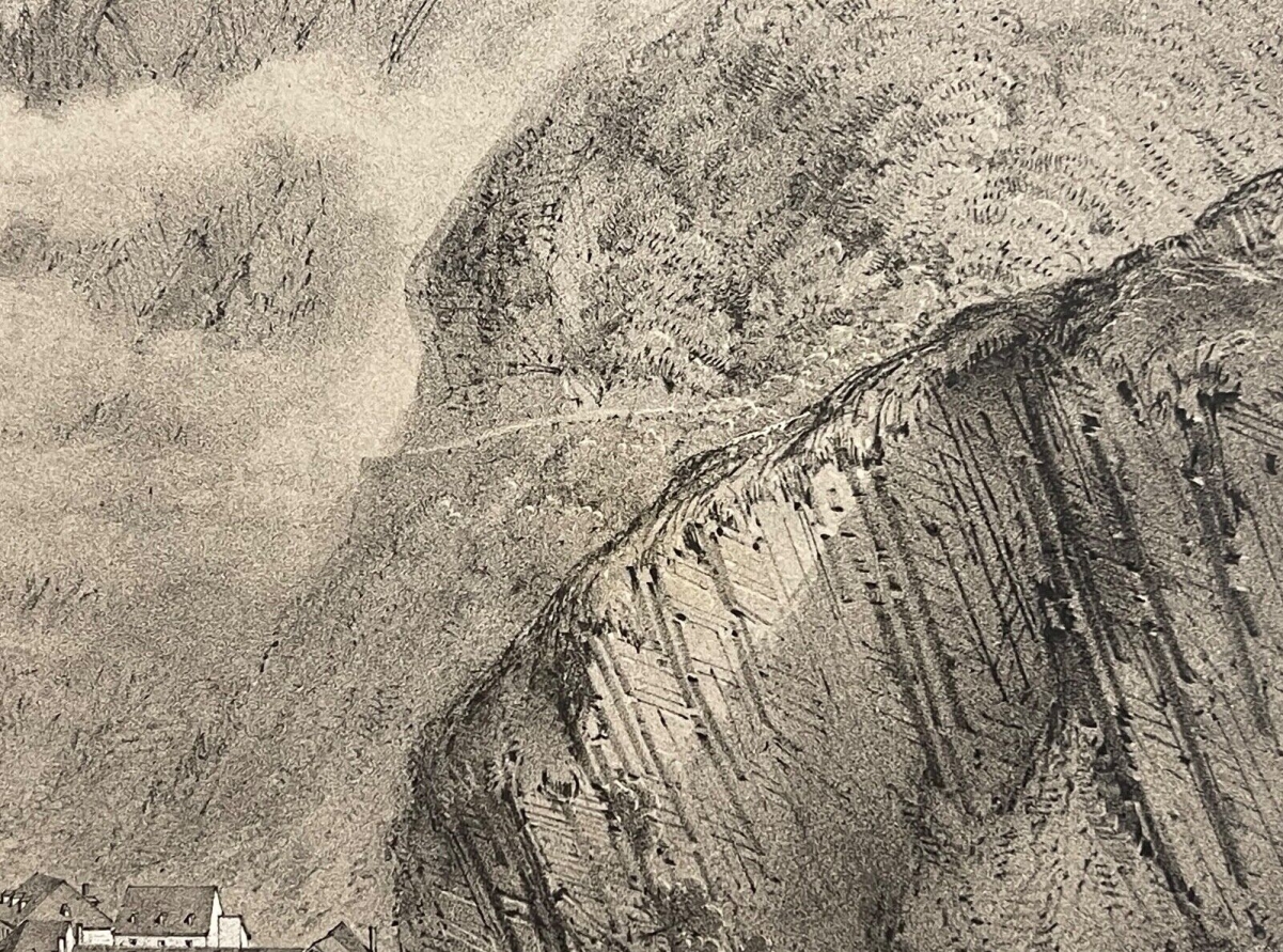 Je vous propose cette lithographie sur papier chine marouflée sur Velin représentant Eaux-Bonnes.