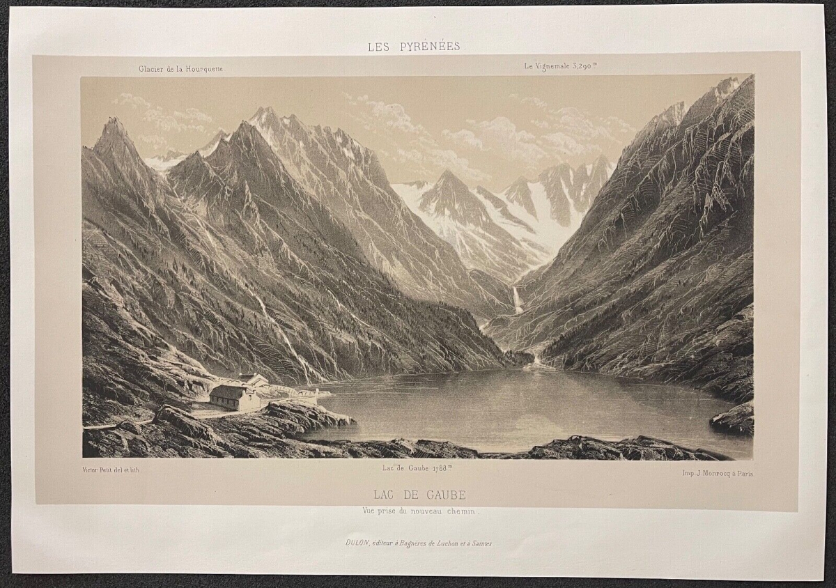 Barèges Hautes-Pyrénées Argelès-Gazost Victor Petit Lithographie circa 1860 Je vous propose cette lithographie originale sur papier chine marouflée sur papier vélin. ...