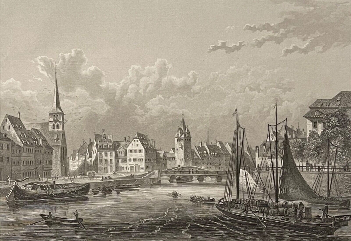 Oiseau migrateur. Aquarelle, paysage, cigogne. Signée, XIXe début XXe. Alsace. Je vous propose cette jolie aquarelle d'un paysage avec une cigogne ! Thème peut courant ...
