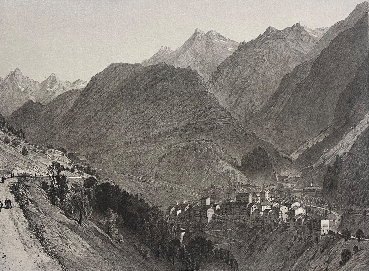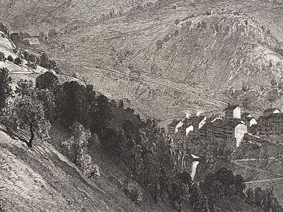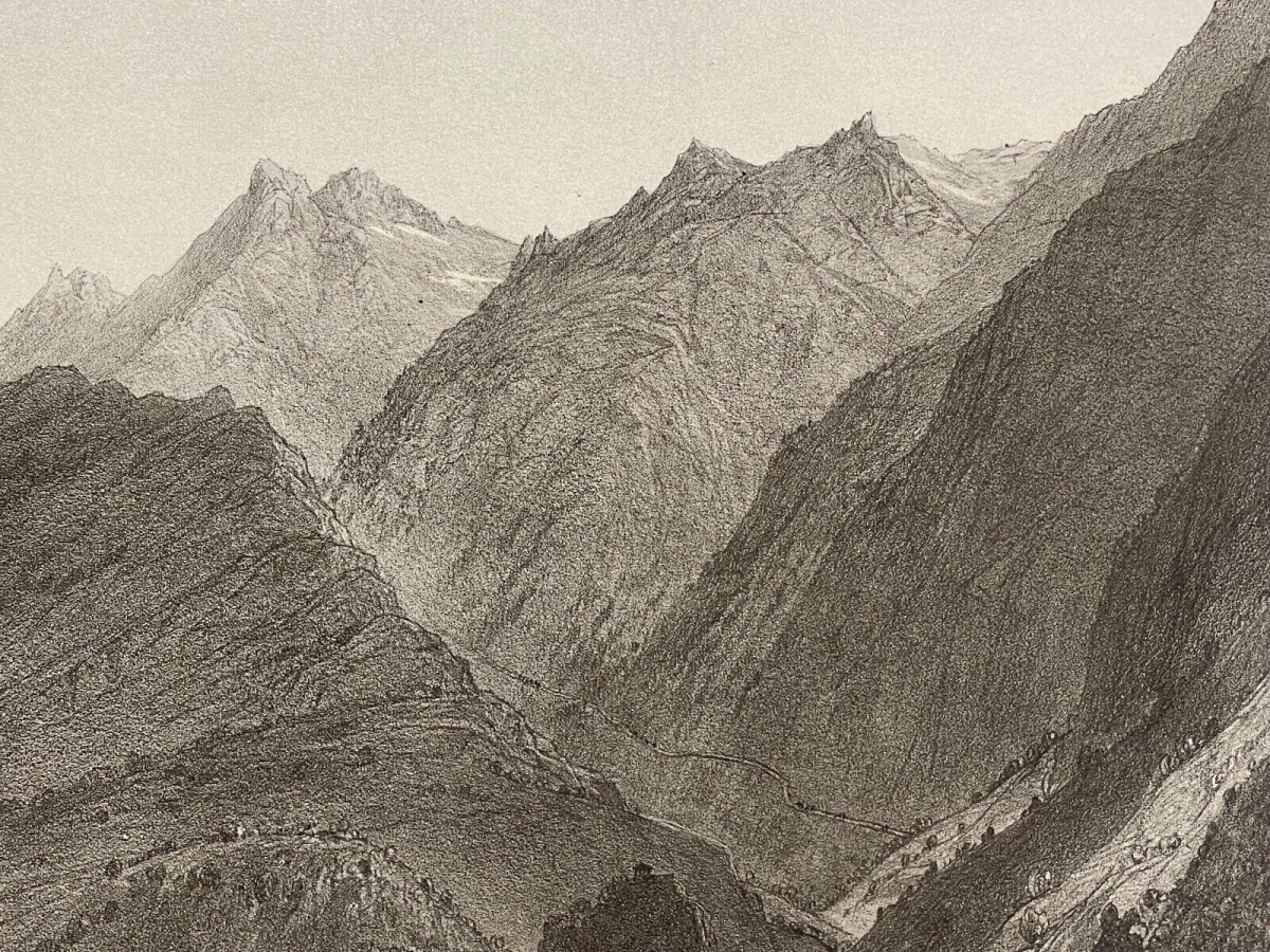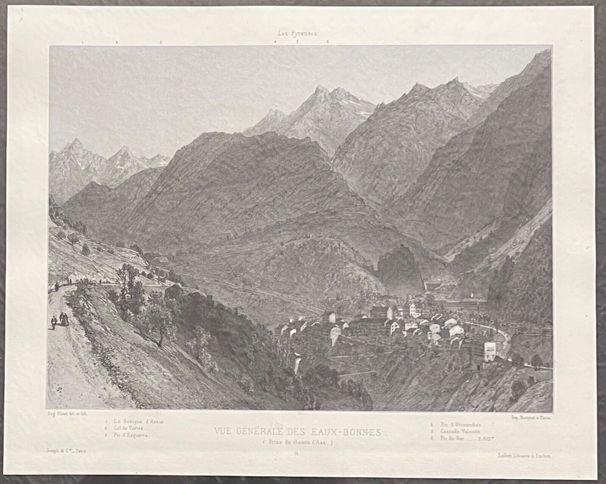 Vallée du Gabas Pyrénées-Atlantiques lithographie c 1860 France Je vous propose cette belle lithographie. Tirage original vers 1860. La feuille fait 32,5 ...