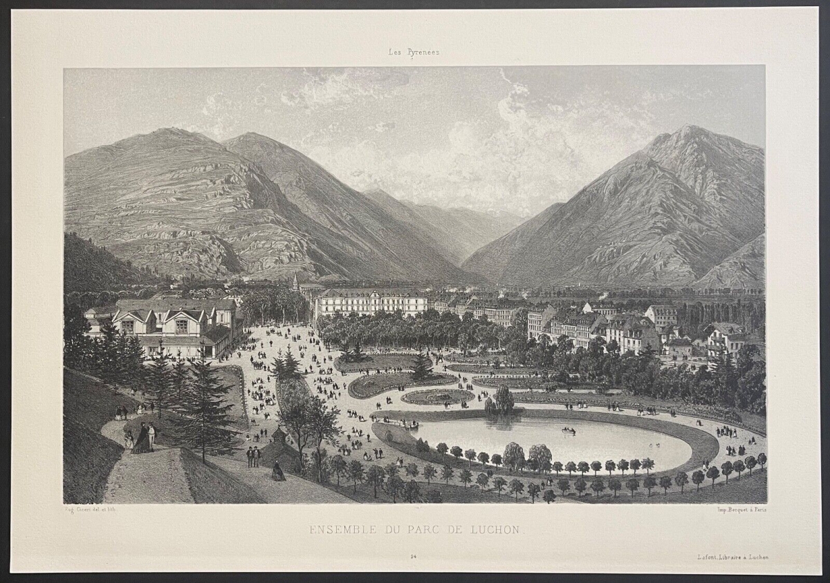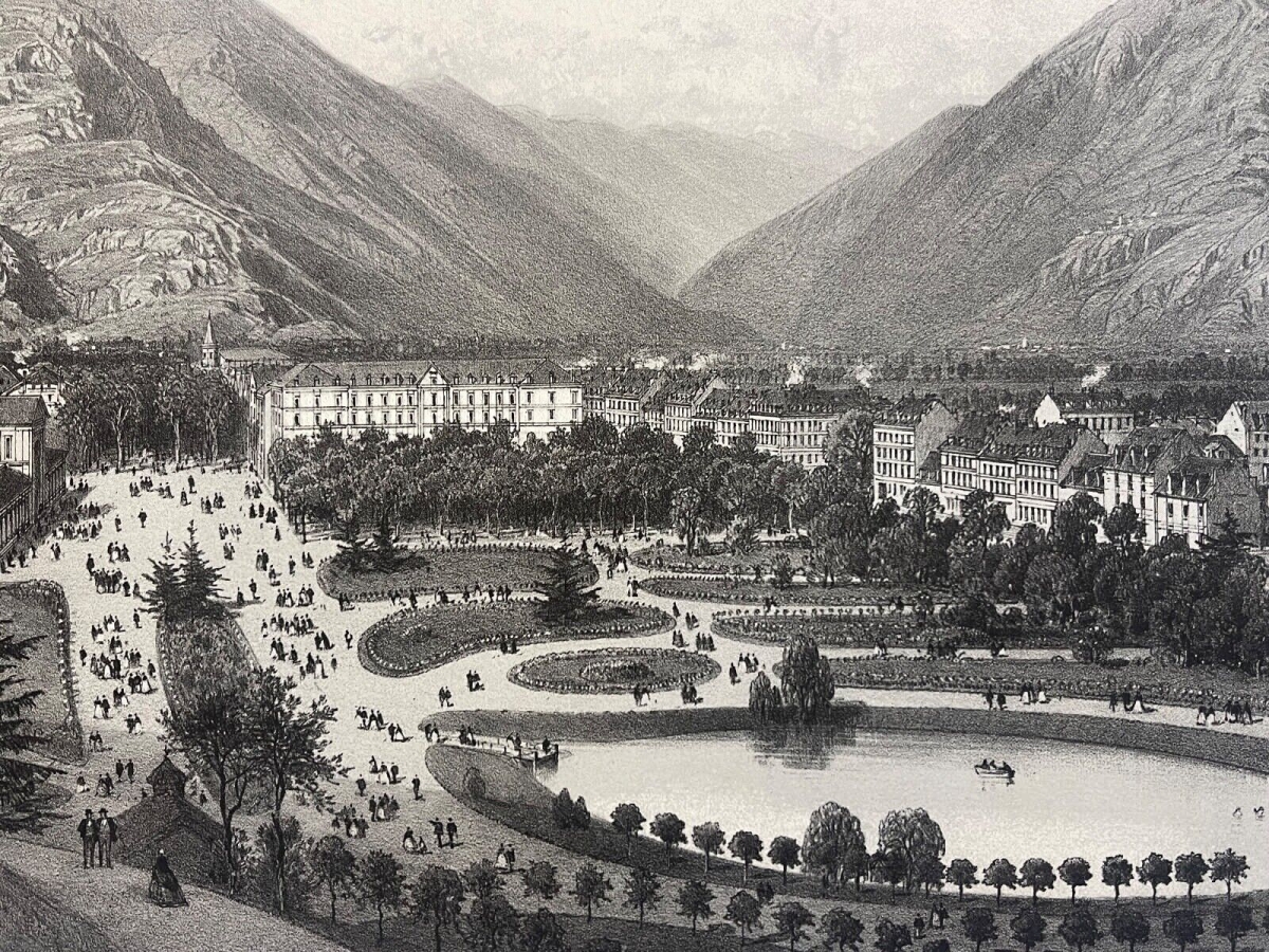 Bagnères-de-Luchon Parc de Luchon Haute-Garonne lithographie 1860