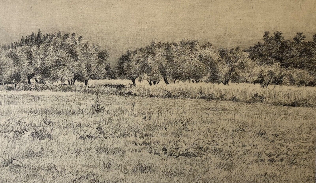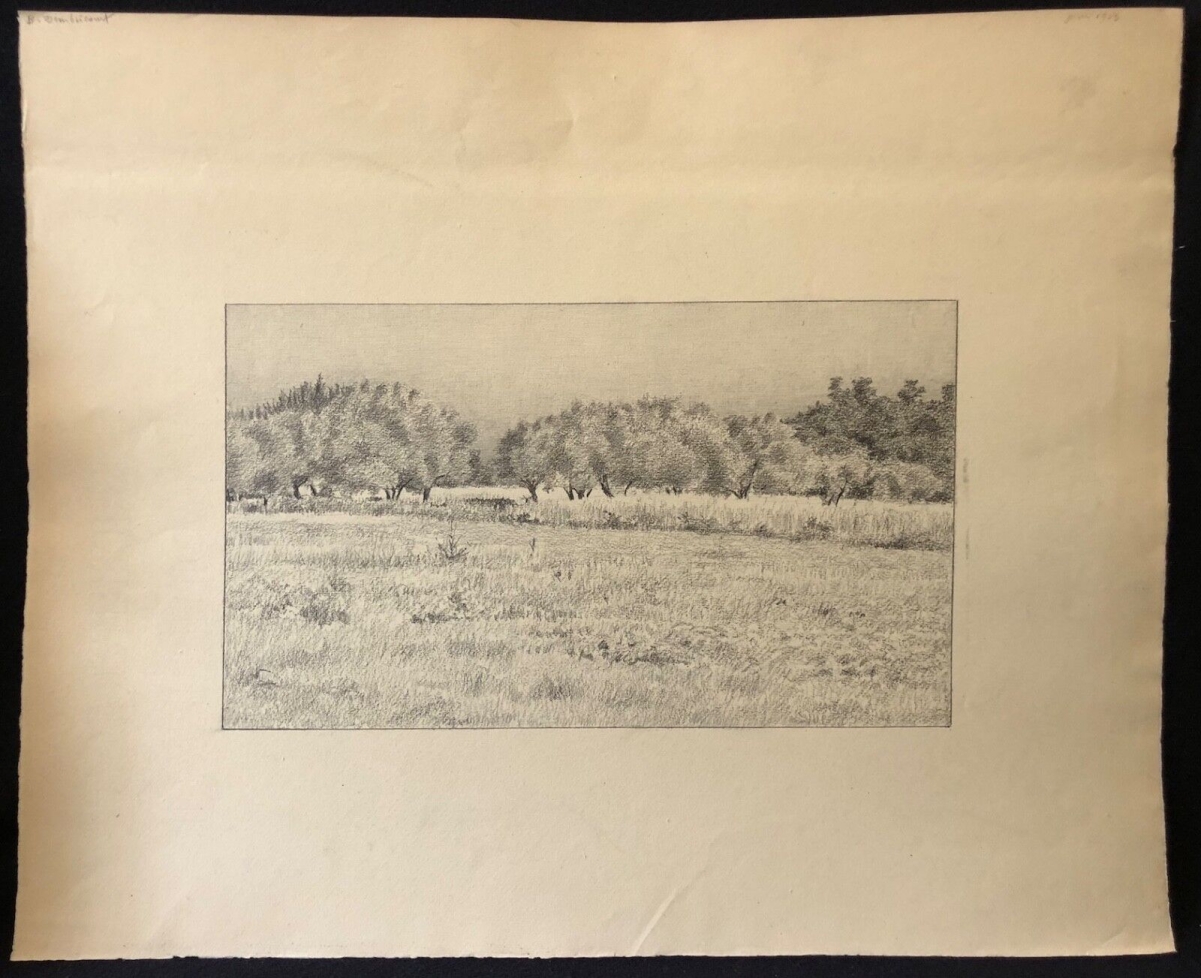 Peinture. Provence, paysage provençal, vache. Monogrammée D. France Je vous propose cette belle peinture sur papier cartonné représentant un paysage provençal...