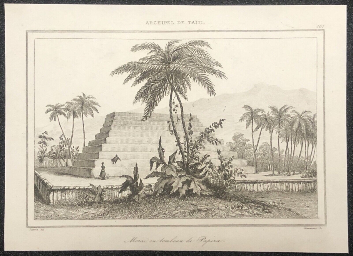 Tahiti un Moraï cimetière vers 1830 Polynésie française Océanie France Je vous propose cette gravure Tahiti un Moraï cimetière vers 1830. La feuille mesure 19,...