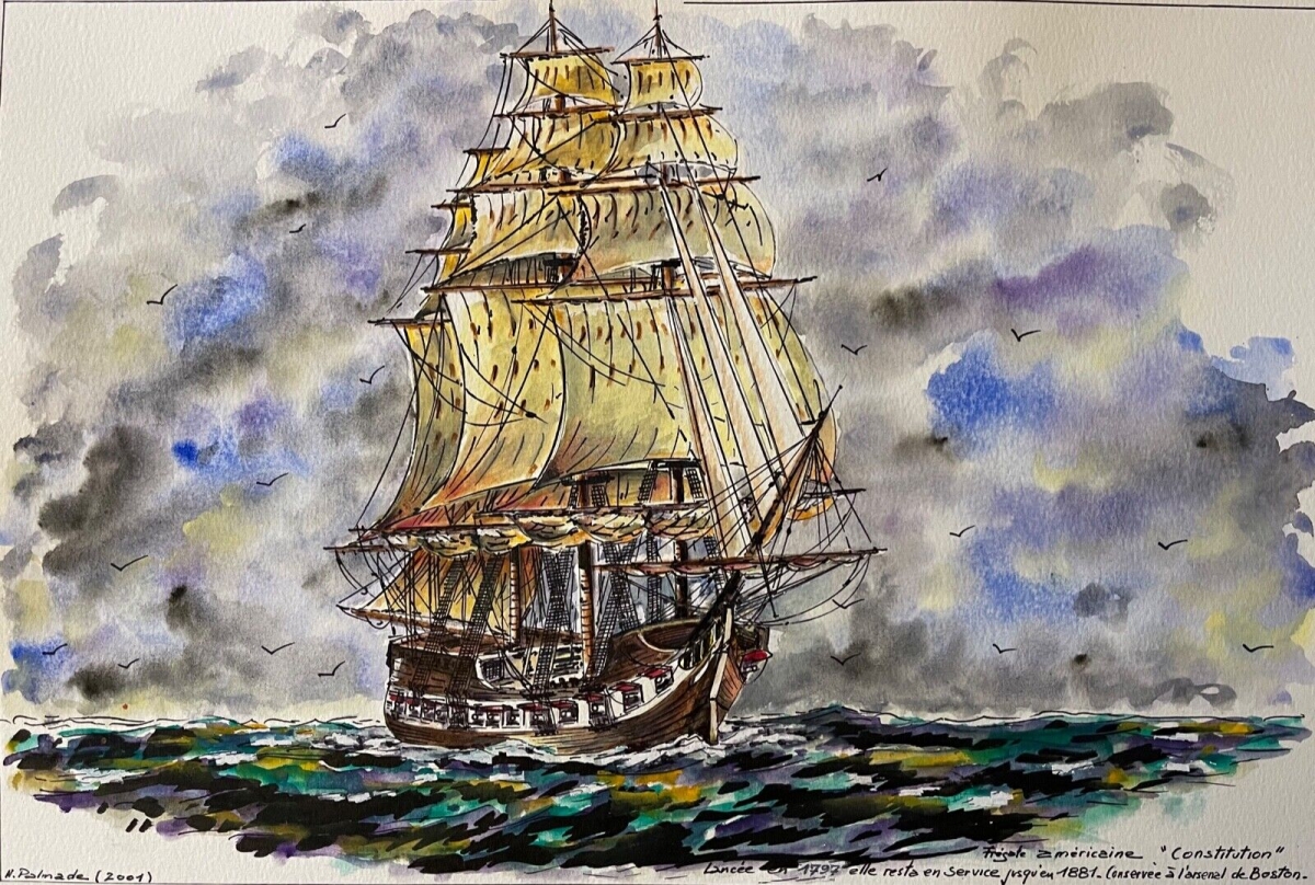 Marine Frégate américaine constitution aquarelle de 2001 Navire bateau