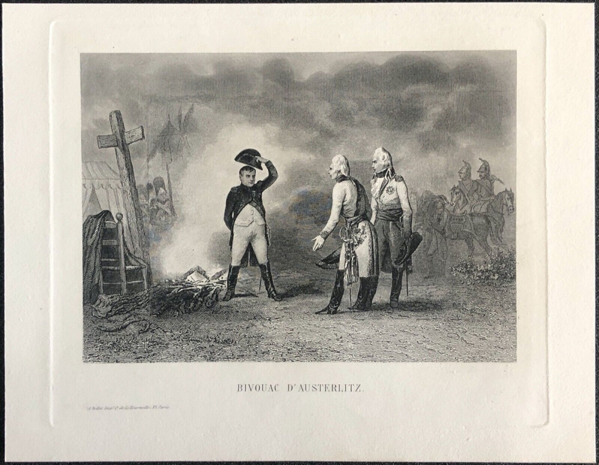 Napoléon Bonaparte Bivouac d'Austerlitz Empire France gravure 1862