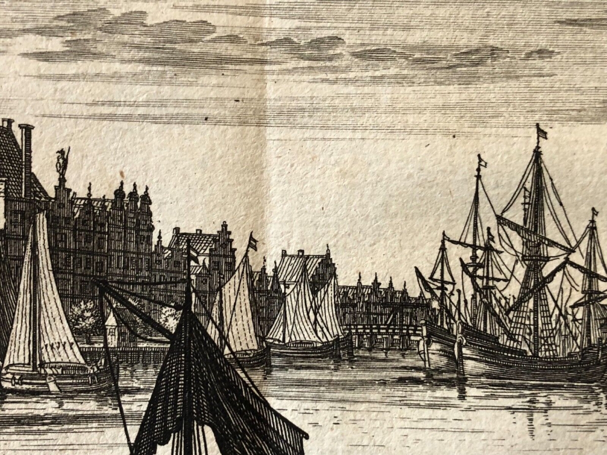 Artculture6 vous propose cette gravure Hollandaise. Gravure sur cuivre sur papier vergé de 1737. La feuille fait 25,2 cm par 22 cm, la gravure seule 16,8 cm par 13,2 cm. On notera des traces de plis d'origine et un autre dans l'angle de la marge basse droite. Belle pièce à saisir !