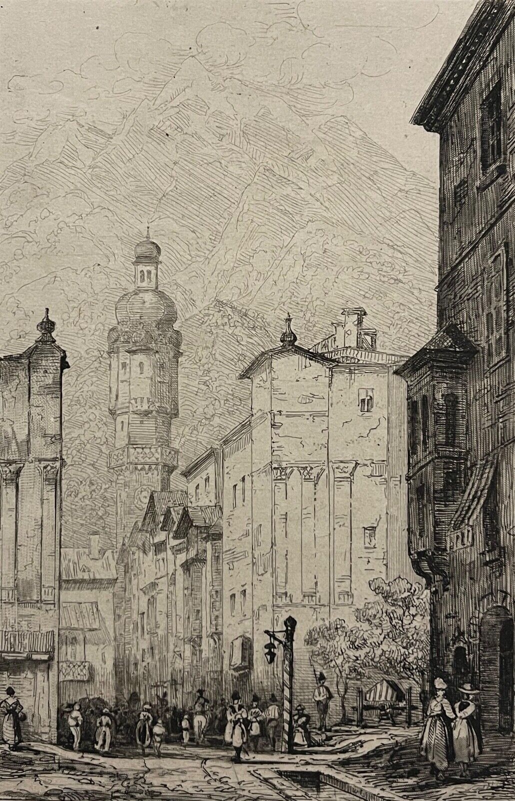 Autriche Innsbruck Tyrol gravure pointe sèche vers 1860