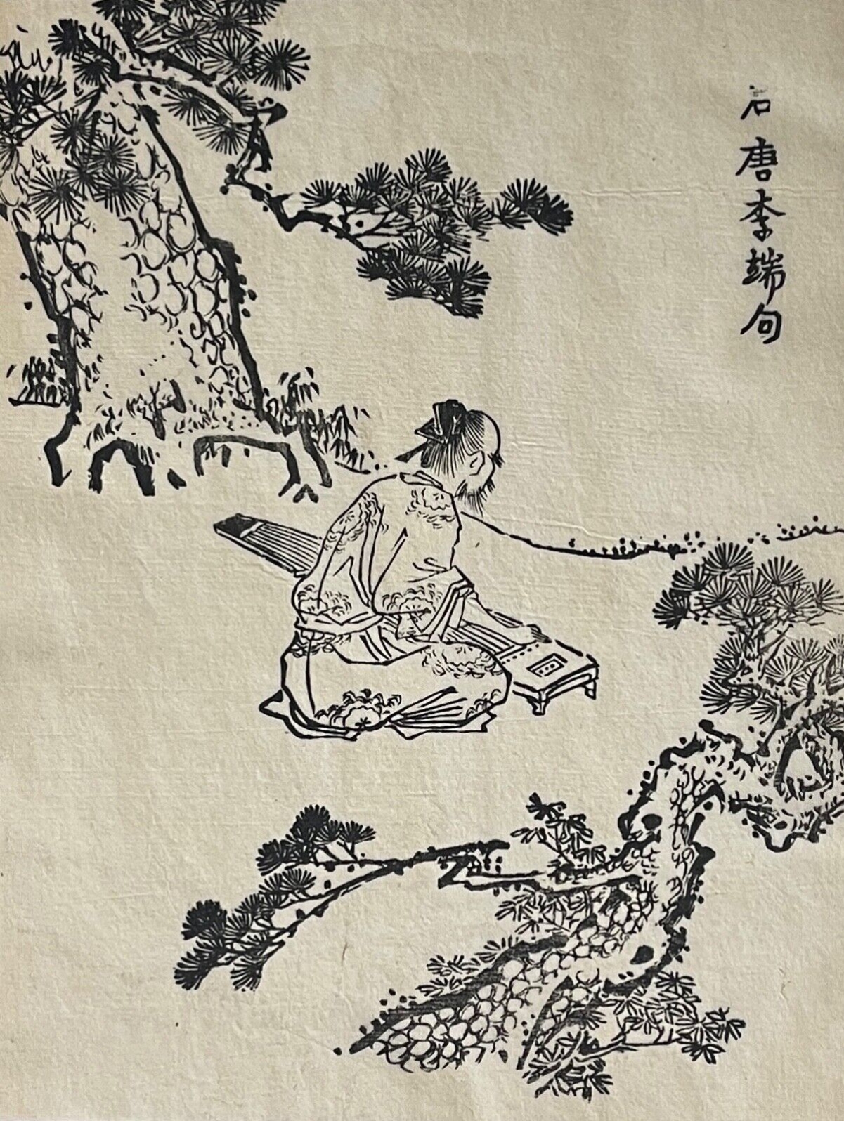 Je vous propose cette gravure japonaise du XVIII� siècle reprenant une composition ancienne inspirée de la tradition artistique chinoise, probablement située dans l'imaginaire lettré de la dynastie Han.