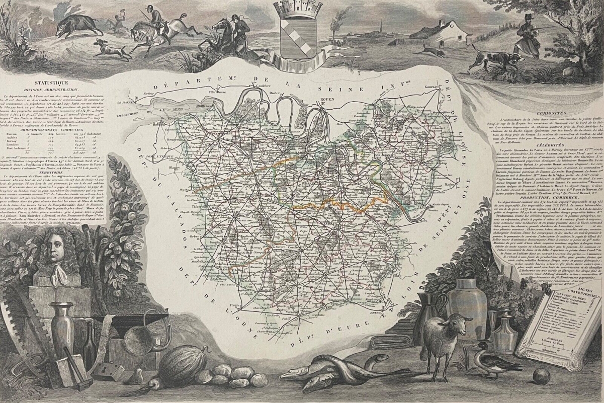 Grande estampe Évéché Evreux 1852 Normandie France Lithographie originale à deux tons de 1852. "Eglise de l'Abbaye de Lessay près de Coutan...