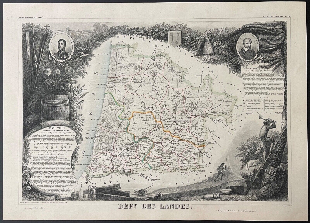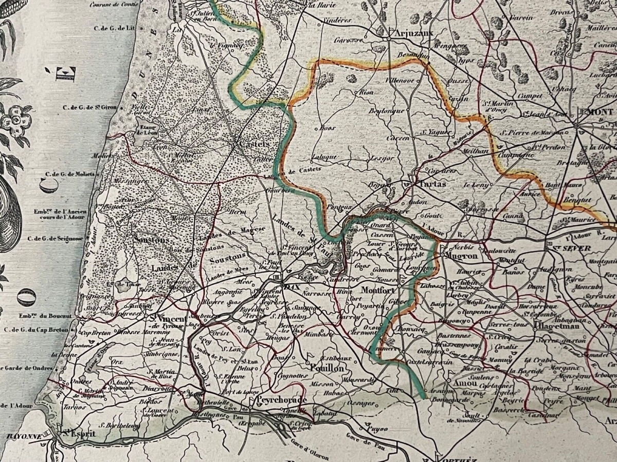 Saint-Sever Landes Chalosse Tursan gravure par Rouargue 1838 France Je vous propose cette gravure originale de 1838. Saint-Sever gravure par Rouargue. La fe...