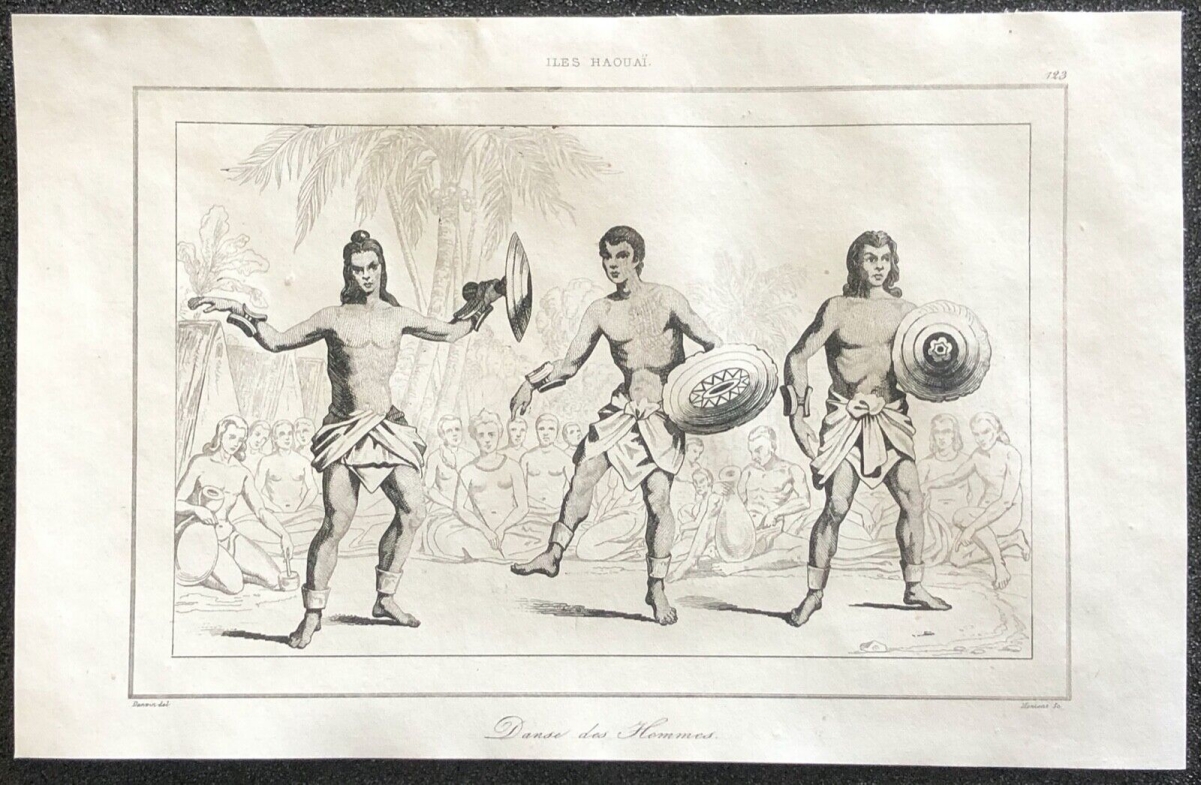 Hawaï États-Unis offrande faite à Cook des îles Sandwich 1836 Je vous propose cette gravure de 1836. Lithographie ; la feuille fait 17,7 cm par 12 cm, ...