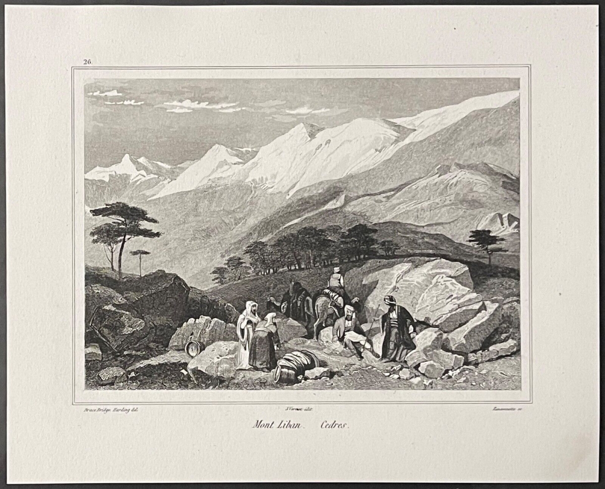 Liban Mont-Liban et cèdres gravure de Ransonnette vers 1840