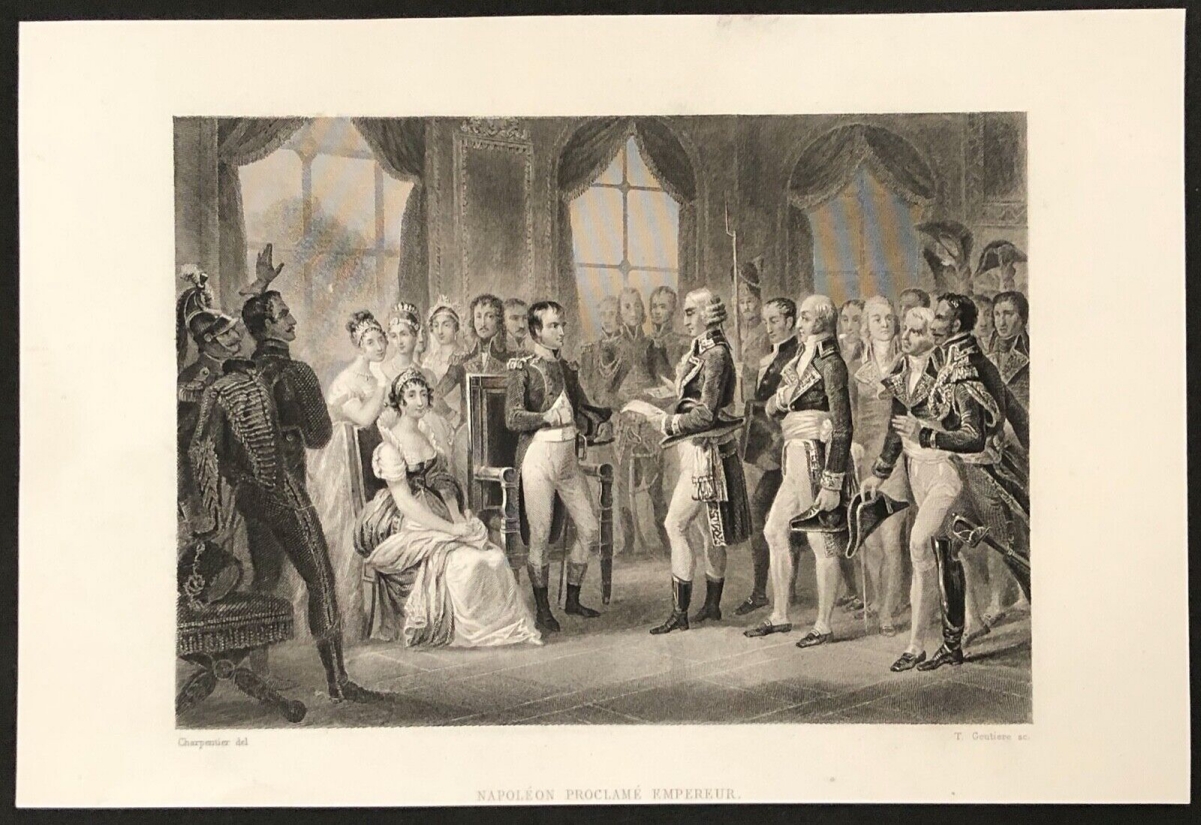Maréchal Ney remet drapeaux trouvés à Insbrück Napoléon Bonaparte Empire c 1840 Je vous propose cette gravure fin XIXe début XXe. La feuille fait 26,7 cm par 20,5 cm, l...