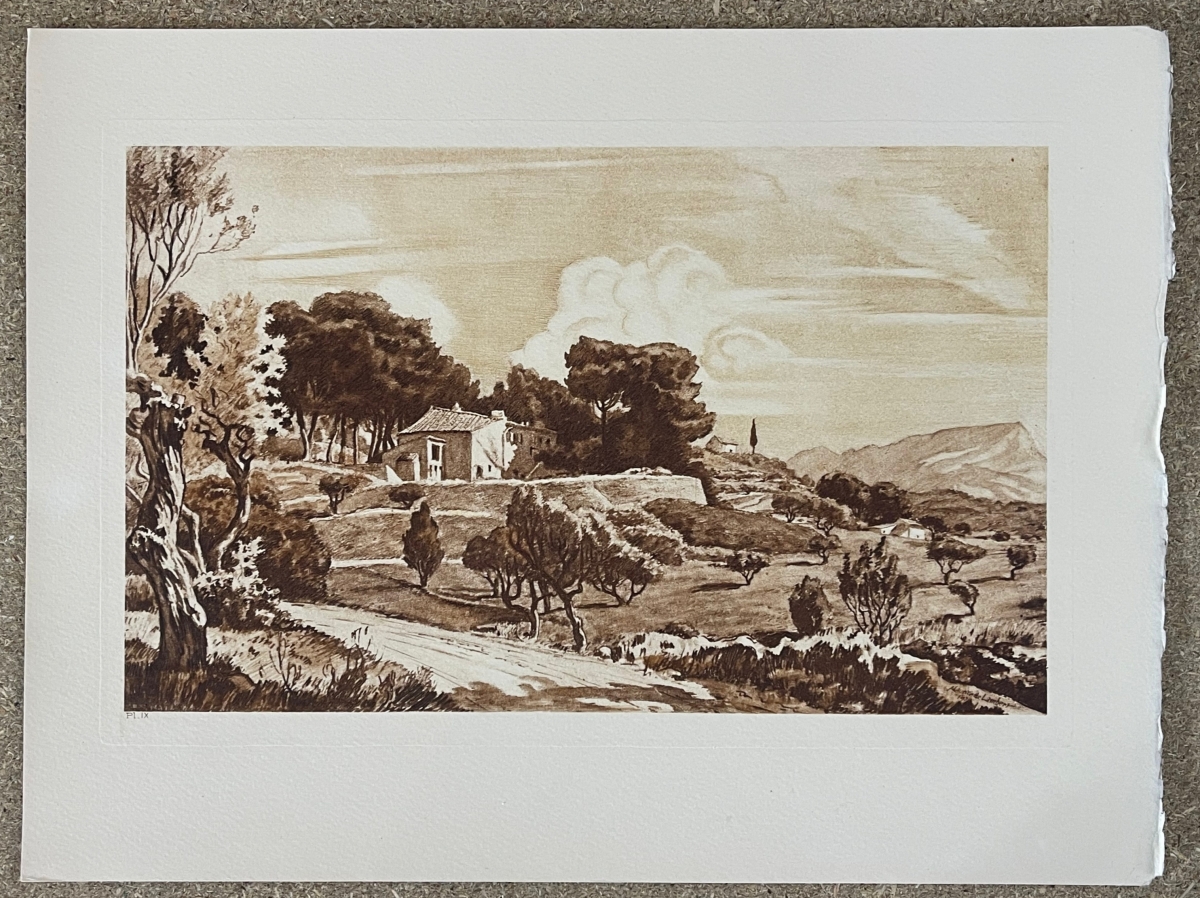 Aix-en-Provence le parc de violaine vers 1942 France Provence Bouches-du-Rhône Je vous propose cette -stampe c 1942. La feuille fait 32,5 cm par 24,5 cm. La gravure seu...