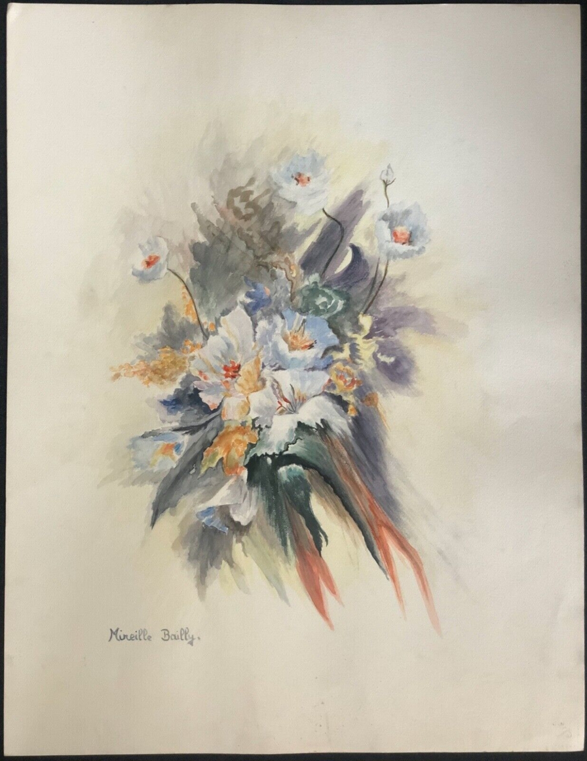 Grande aquarelle. Bouquet signée Mireille Bailly. Je vous propose cette belle aquarelle signée Mireille Bailly. 50,2 cm par 40 cm. Jolie pi...