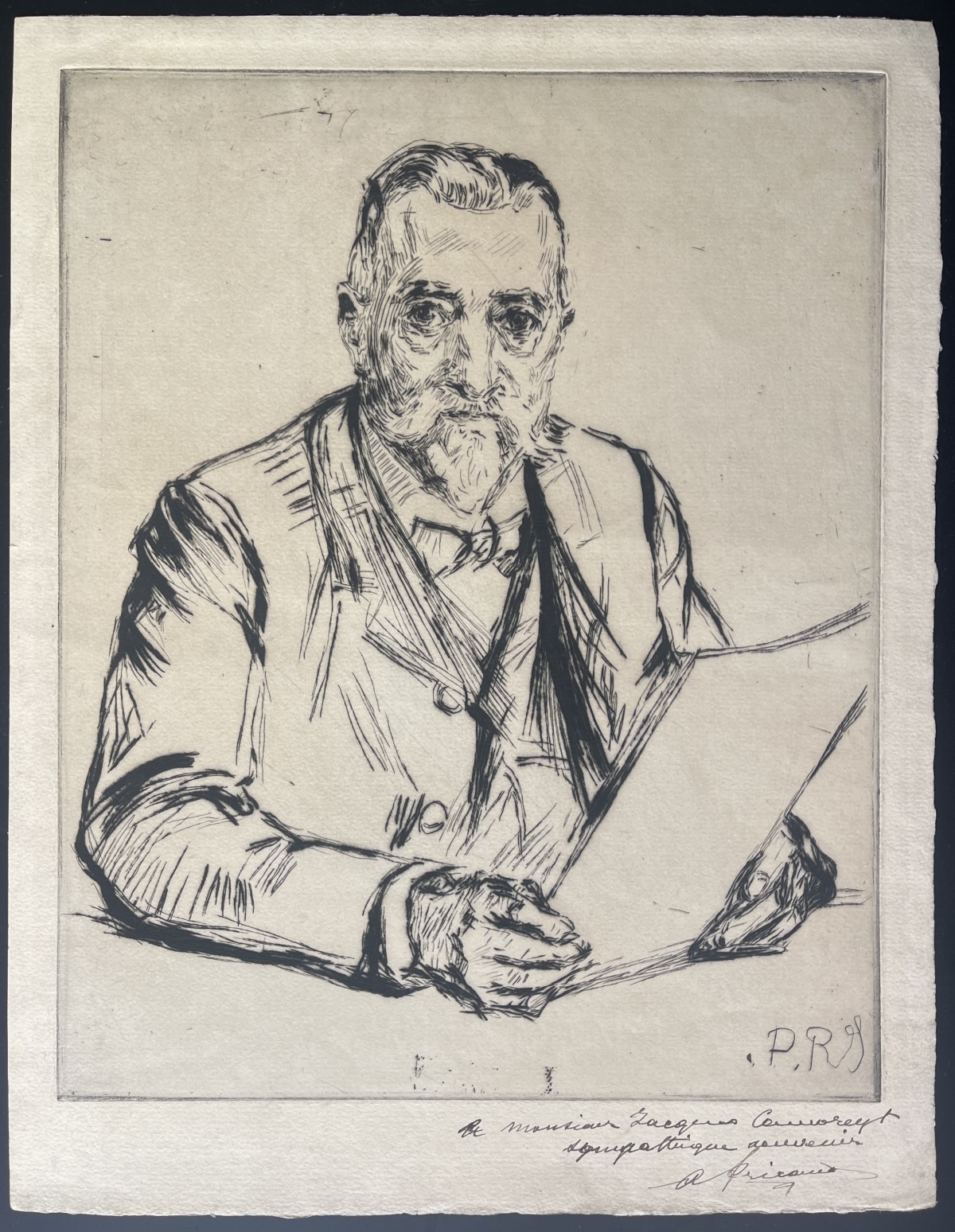 Je vous propose cette egravure en pointe sèche de Charles Paul Renouard (1845-1924) . Sur papier vergé Charles Millmann 32,5 cm par 25 cm, la gravure seule 27,8 cm par 22,3 cm. On notera la présence d'un léger défaut de papier sur l'extrémité de la marge droite.