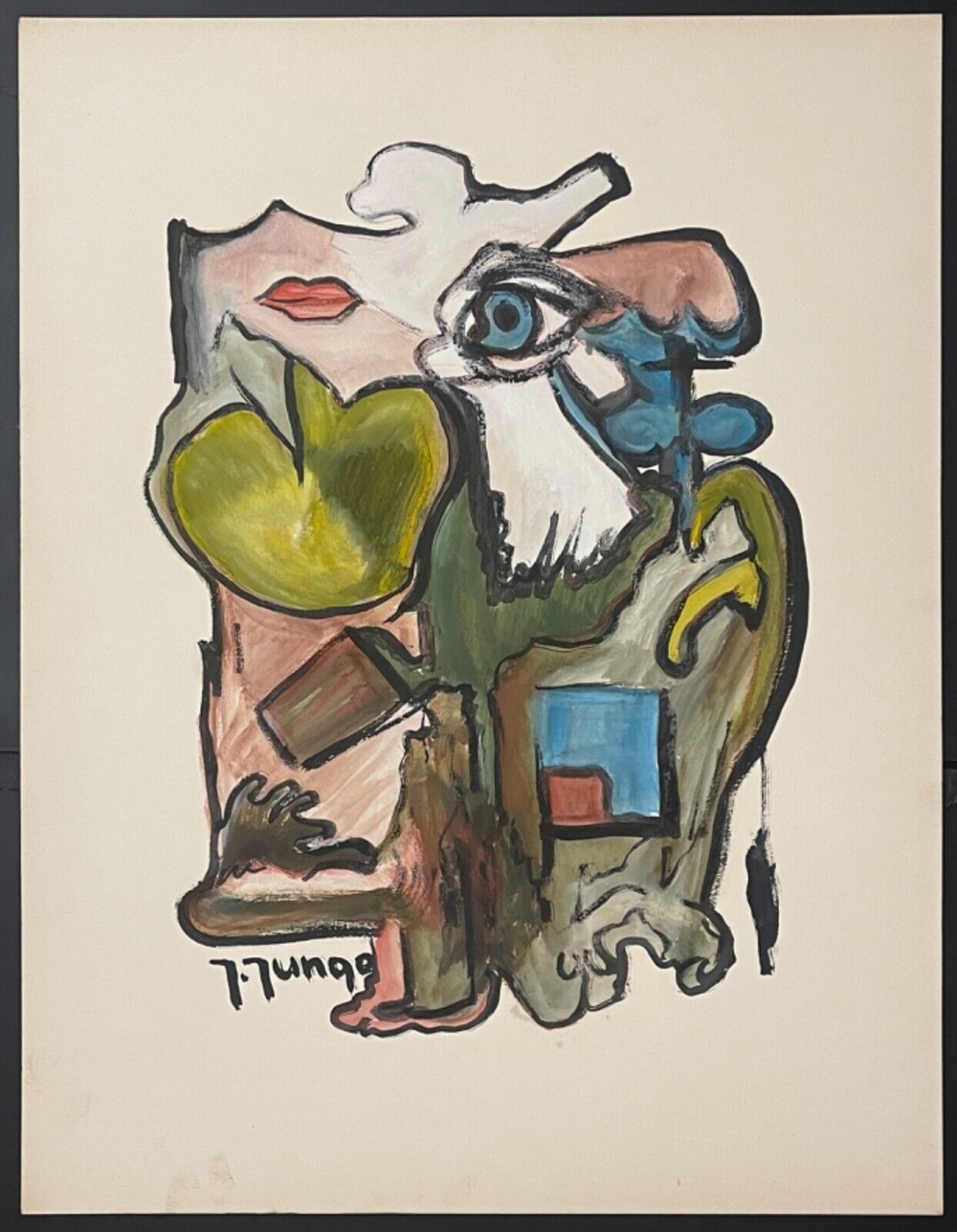 Expressionniste, gouache. Signée Jungo 2ème moitié XXème. Je vous propose cette œuvre expressionniste signée J. Jungo. La feuille fait 65cm par 52cm...
