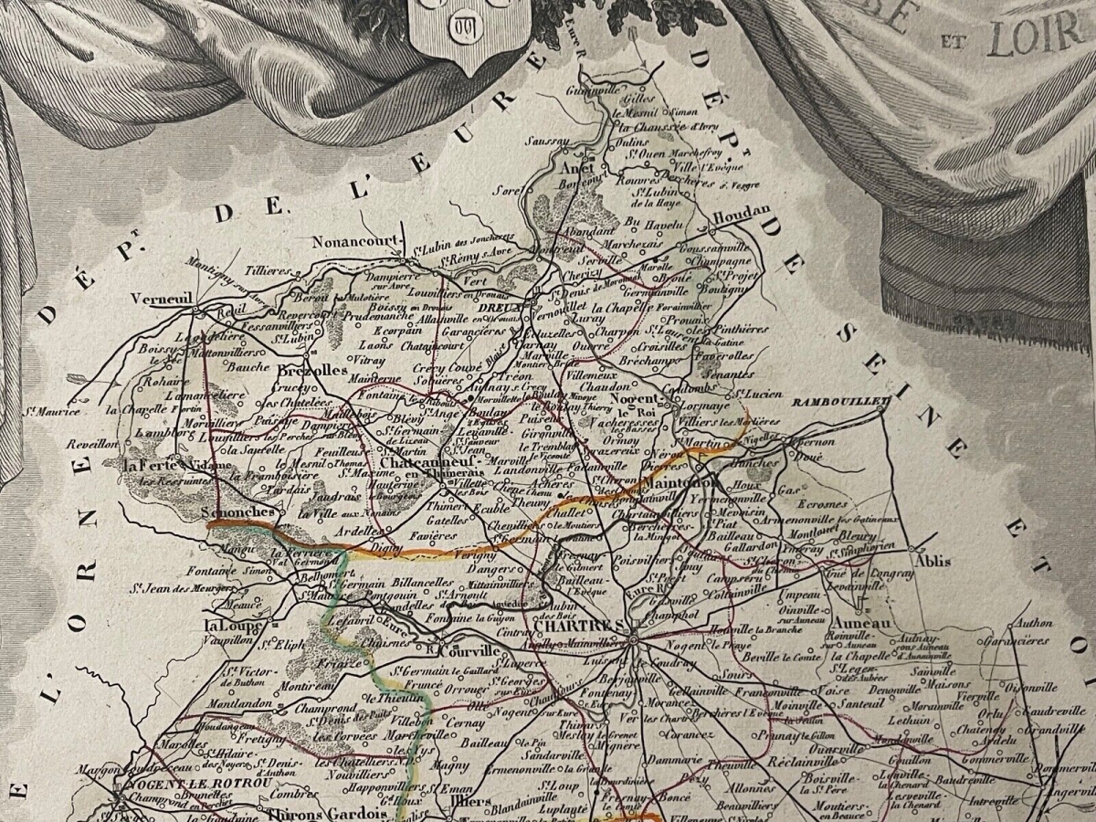 Nogent-le-Rotrou Eure-et-Loir estampe colorisée première moitié XIXe France Je vous propose cette estampe colorisée première moitié XIXe. La planche fait 20,5 cm par...