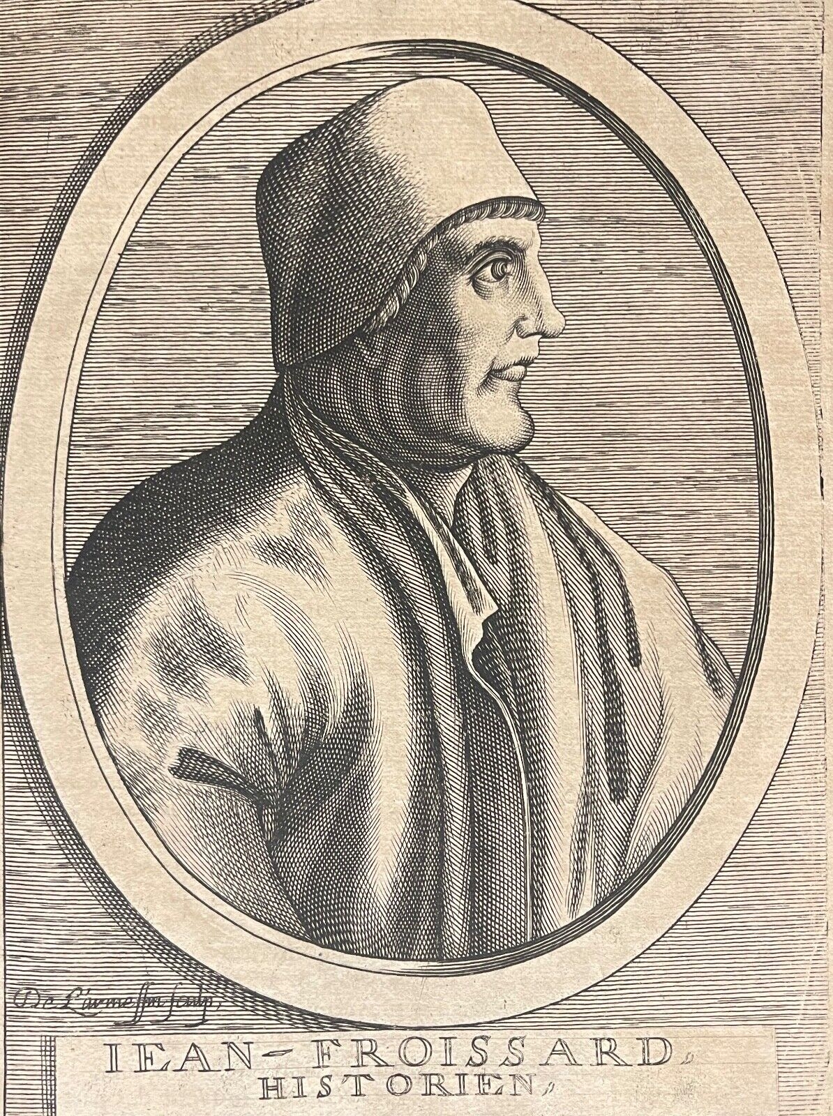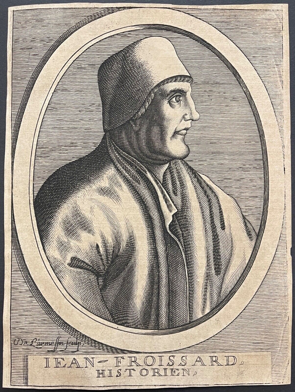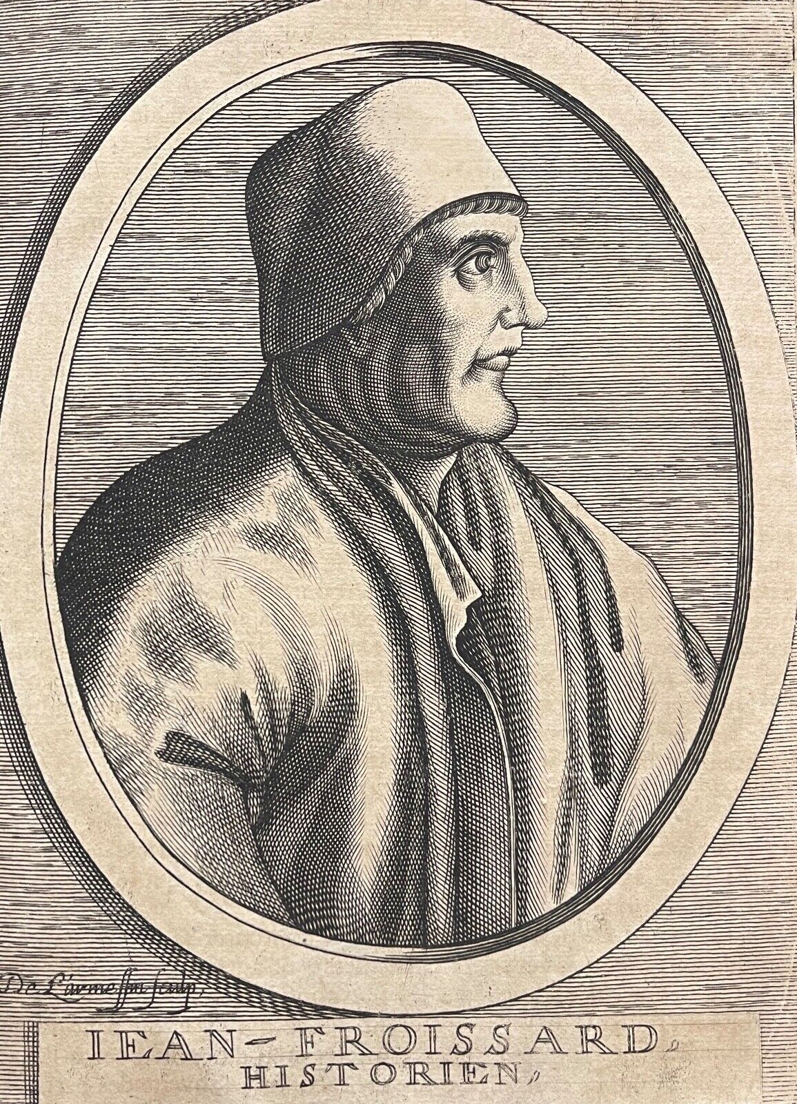 Je vous propose cette gravure de 1682 de Nicolas Larmessin (1638-1694) représentant Jean Froissart (1333-1400) chroniqueur guerre de cent ans..