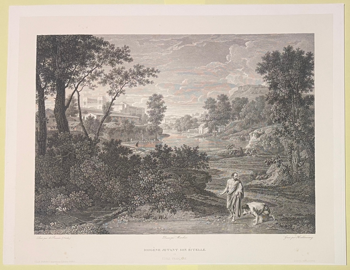 Nicolas Poussin (1594-1665) Diogène jetant sa coupe gravure au burin de Haldennvang (1770-1831) . vers 1810. Tirage vers 1850.