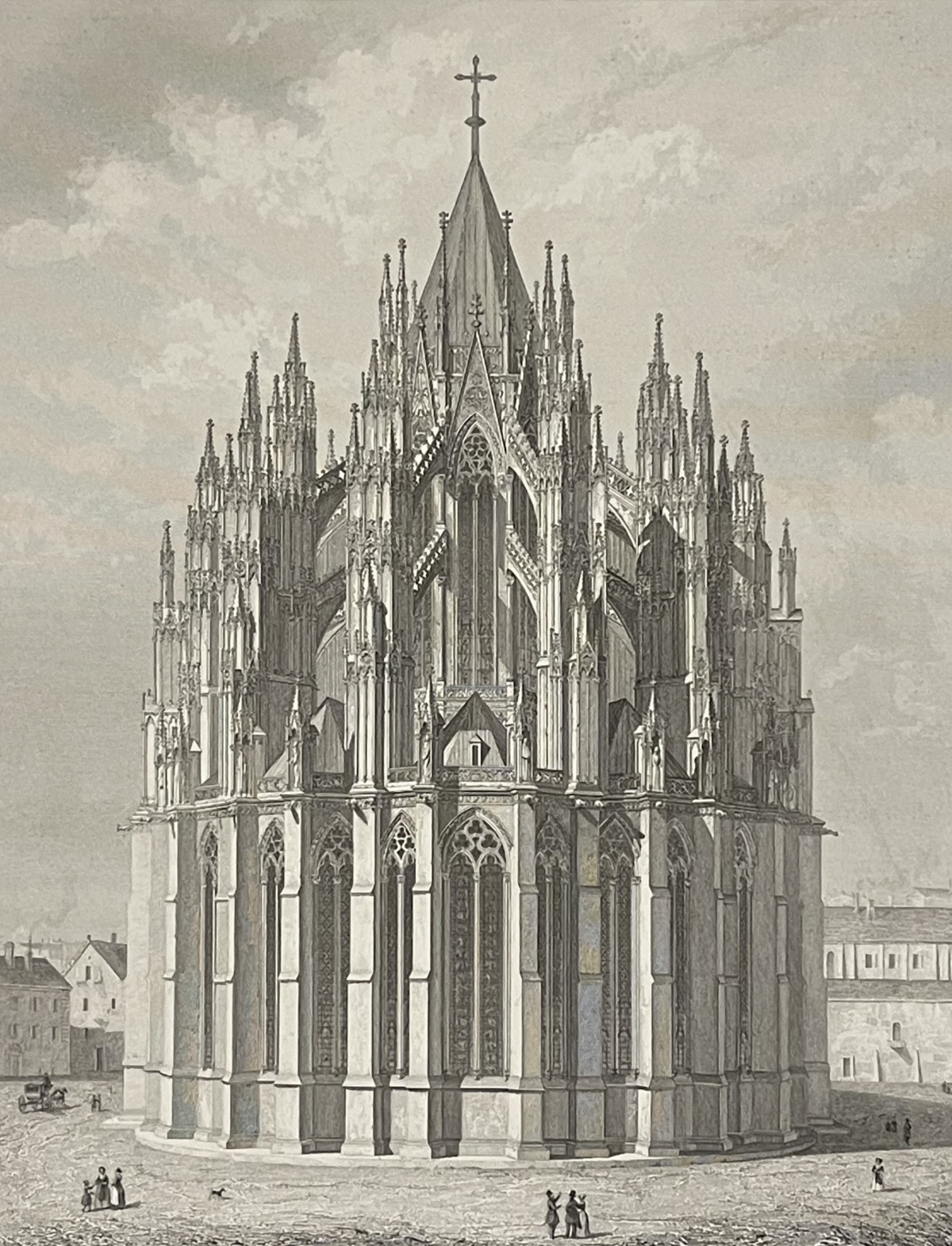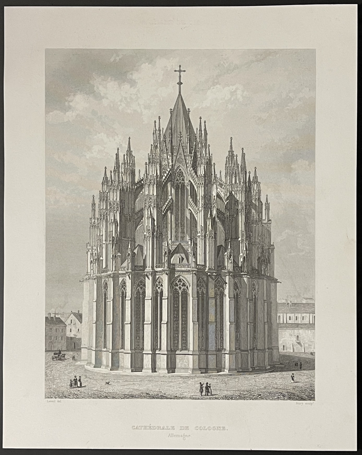 Cologne Allemagne cathédrale église St Michaels Rhin pointe sèche C 1865 Je vous propose cette gravure en pointe sèche vers 1865. La feuille fait 16,2 cm par 11 ...