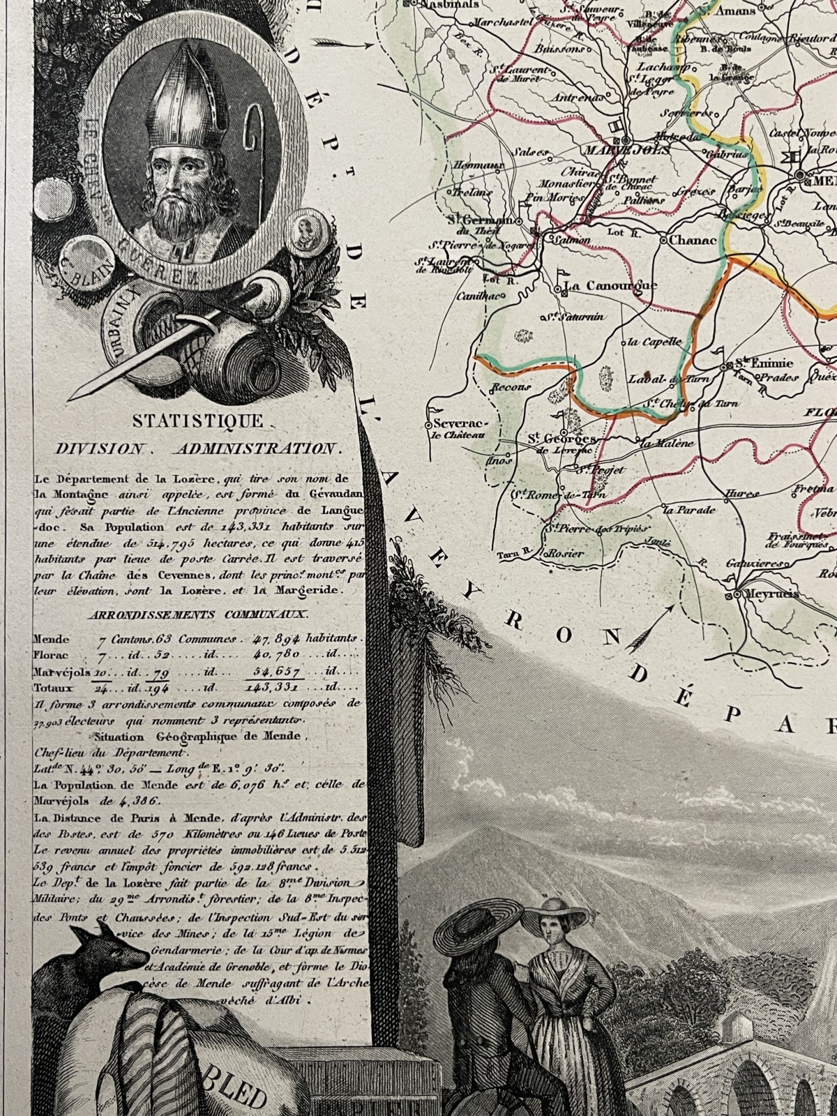 Mende Lozère lithographie de 1835 France XIX Je vous propose cette gravure originale datant de 1835. La feuille fait 20,7 cm par 15,8...