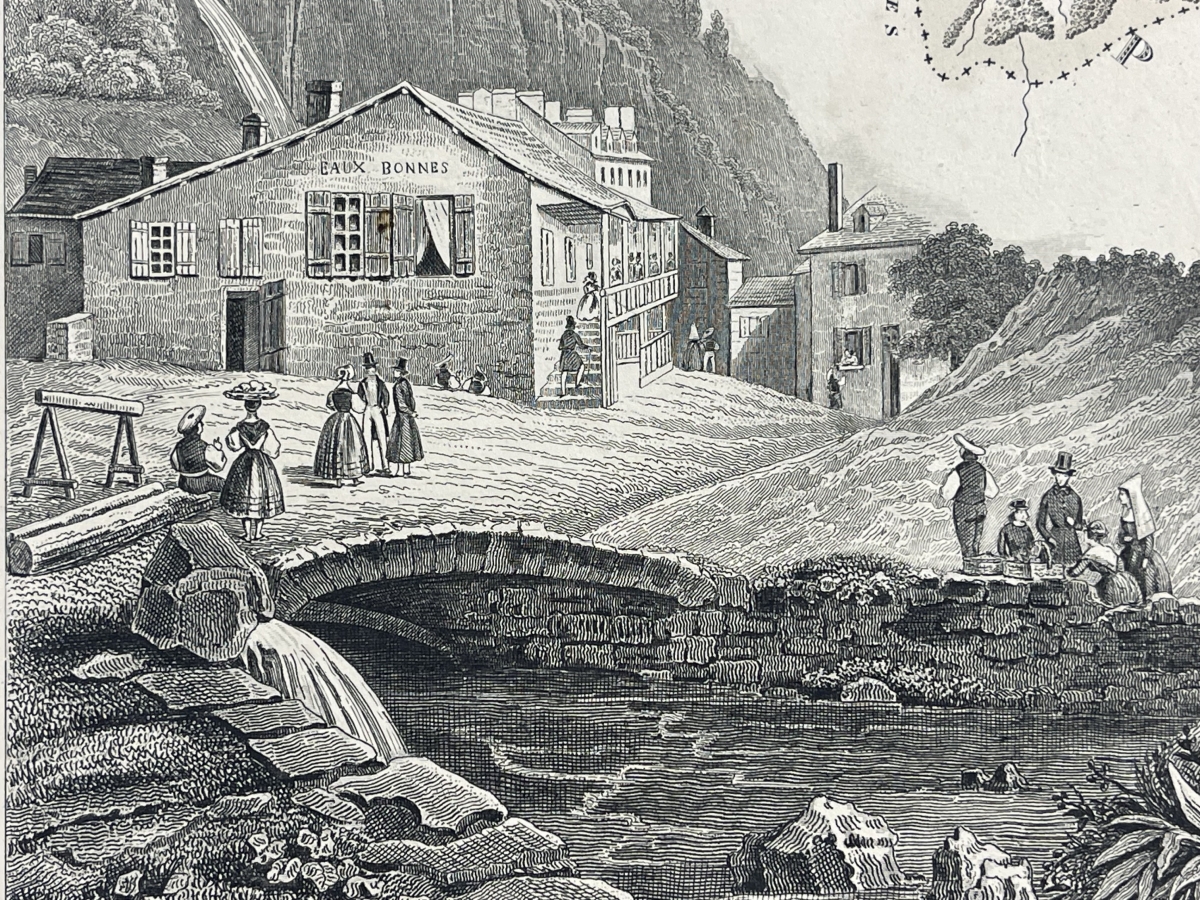 Pont de Lestelle-Bétharram Pyrénées-Atlantiques vers 1860 Bétharram Je vous propose cette lithographie originale vers 1860 : Le Pont de Bétharram. La feuille...