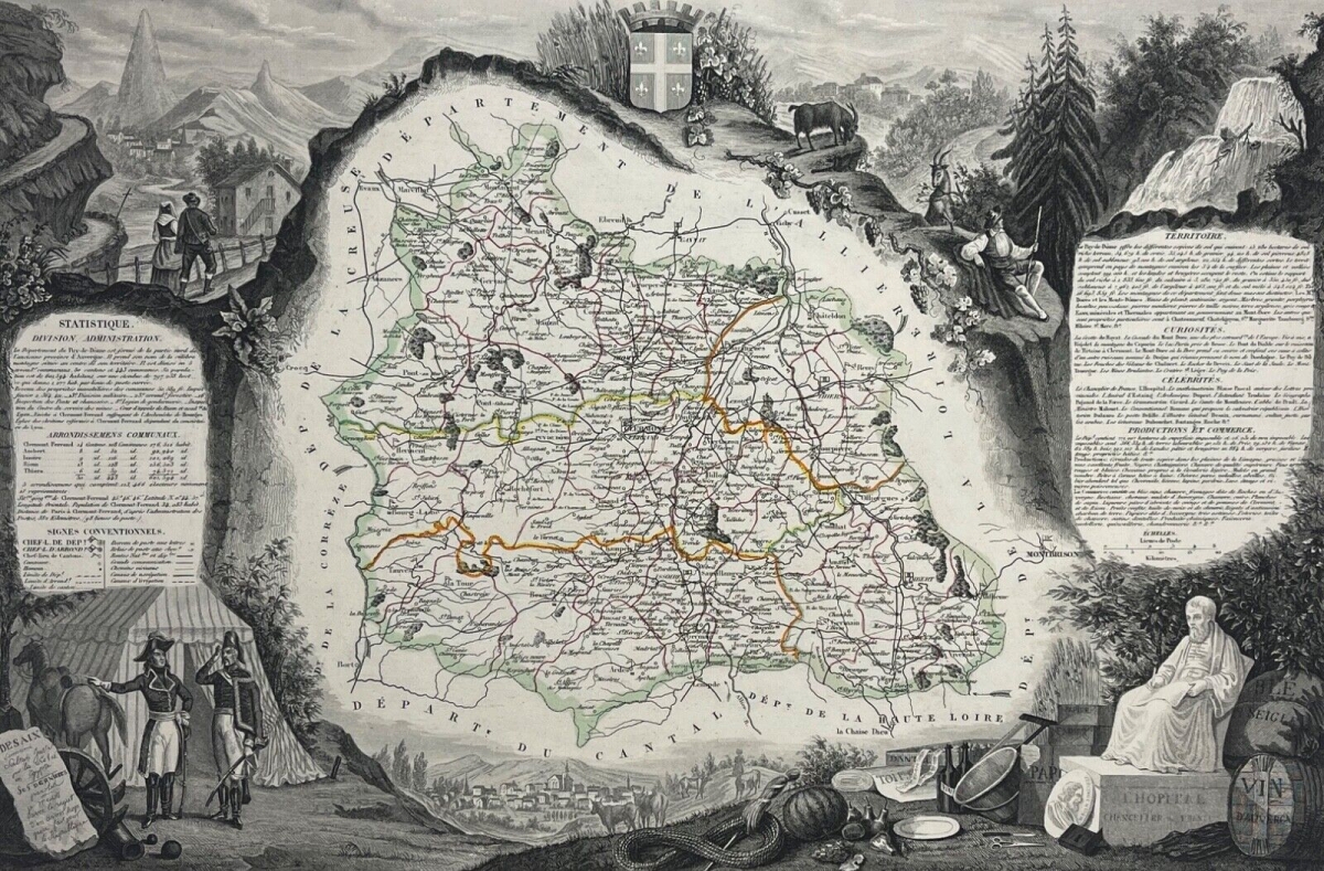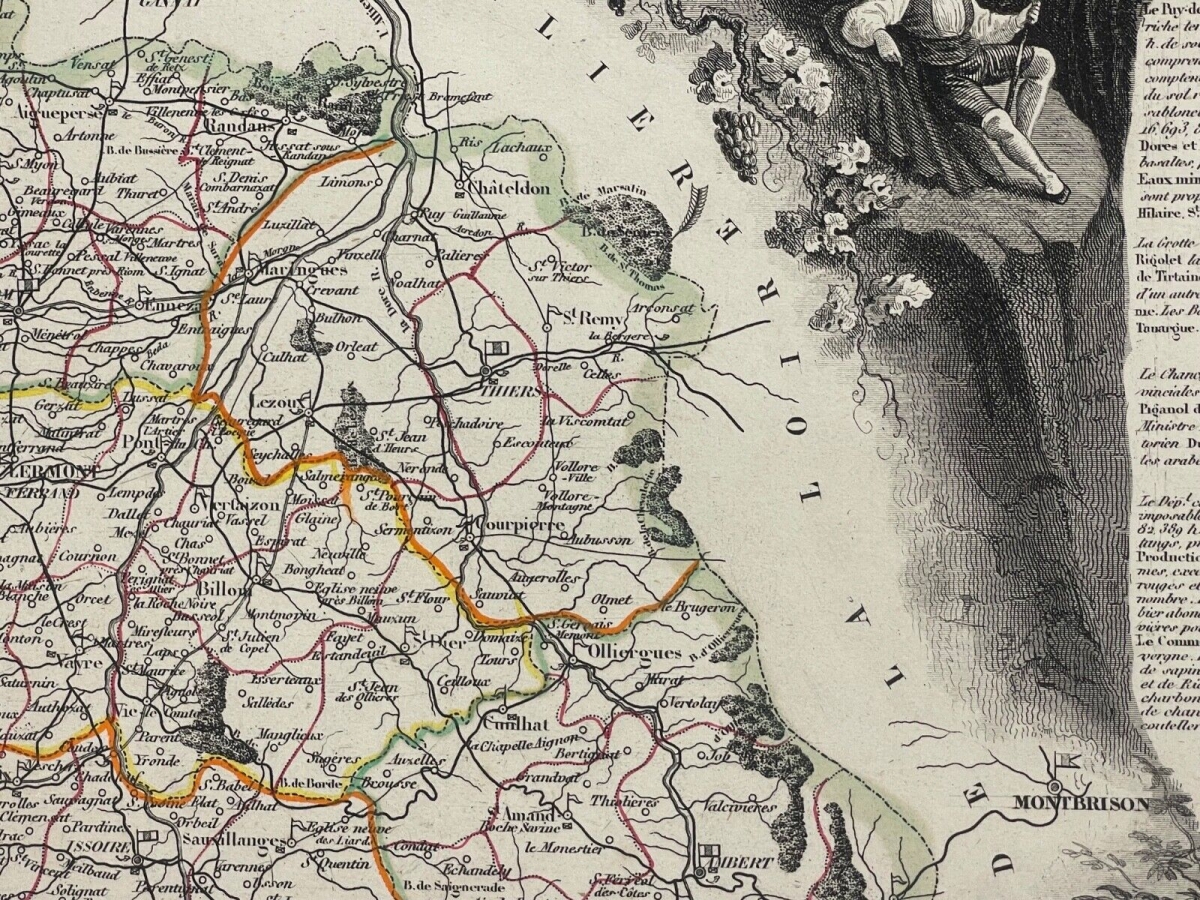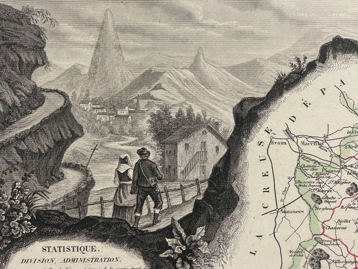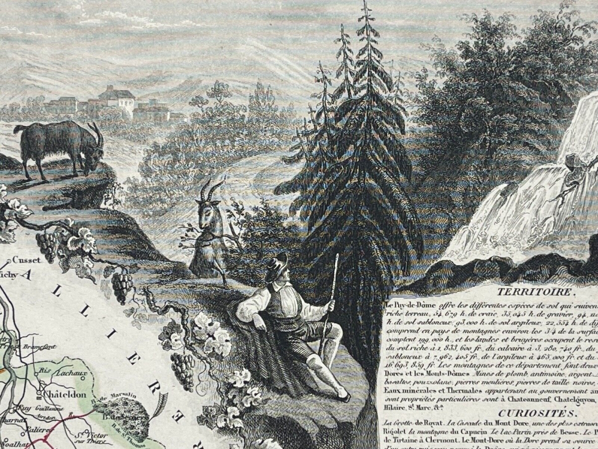 Royat Puy-de-Dôme Clermont-Ferrand activité thermale France eau cure thermale Je vous propose cette gravure originale vers 1838. Royat. Puy-de-Dôme proche de Clermont...