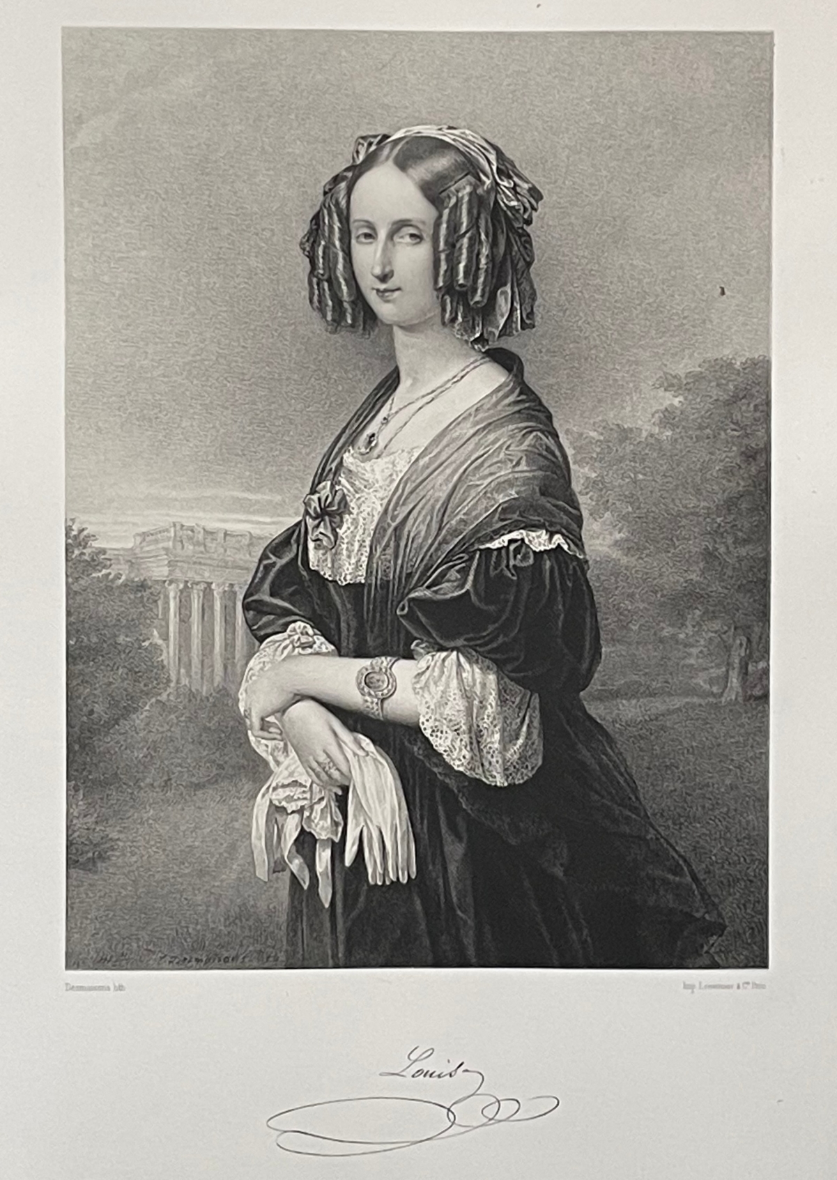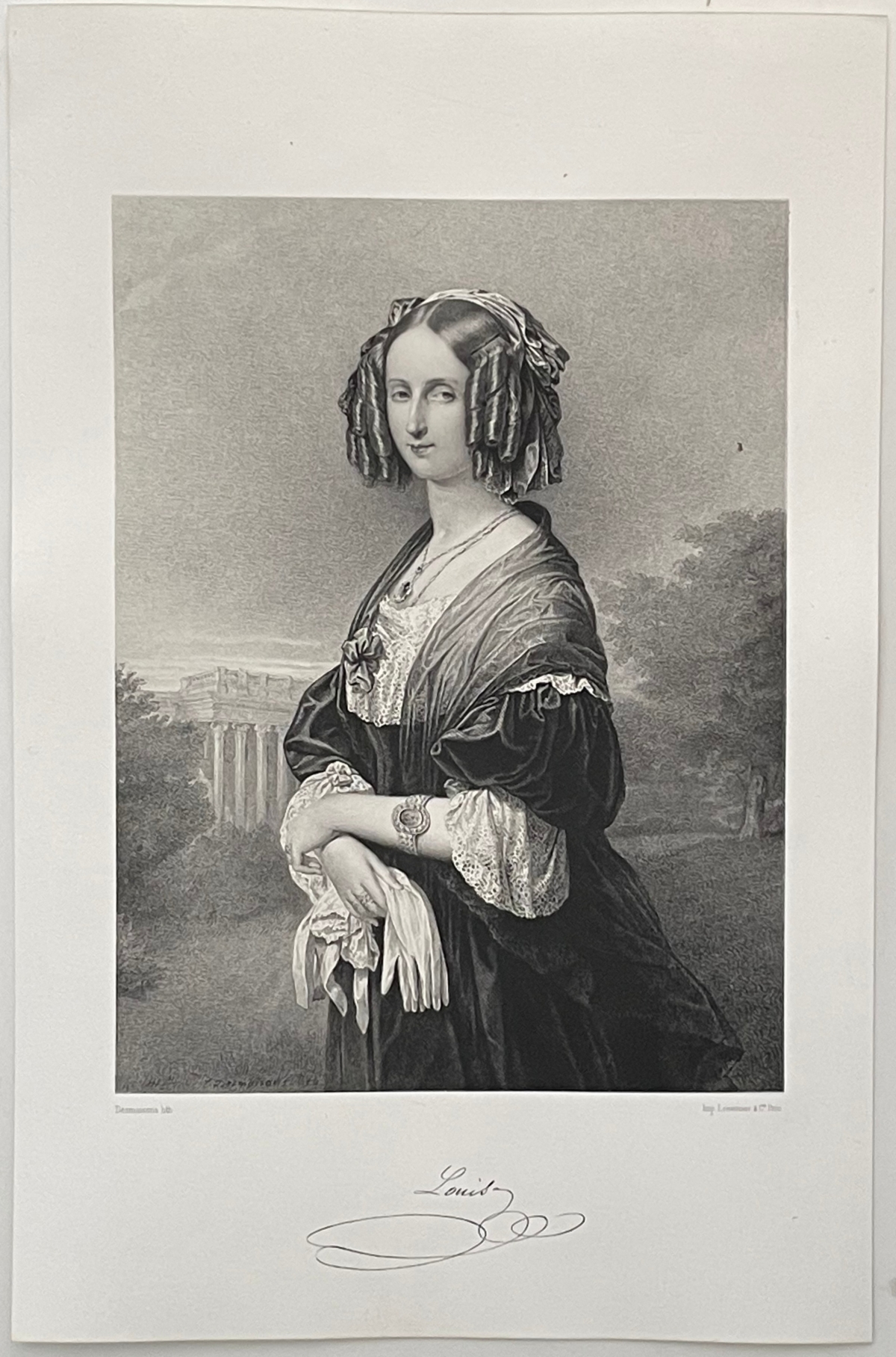 Louise d'Orléans (1812-1850) reine des Belges signature gravure 1872
