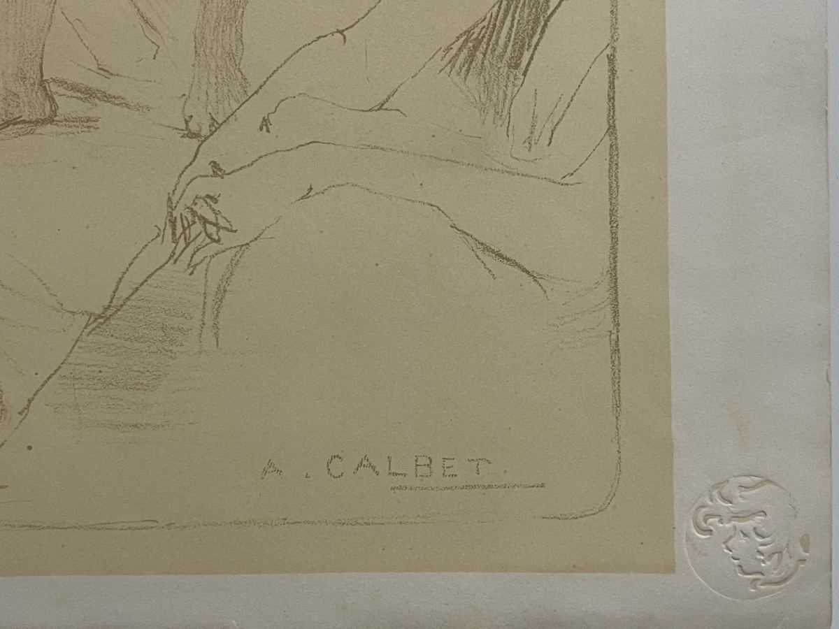 Je vous propose cette lithographie originale 1897 d'Antoine CALBET (1860-1942) L'Inconnue. Signée dans la planche en bas à droite, cachet à sec de l'estampe moderne dans la marge basse.
