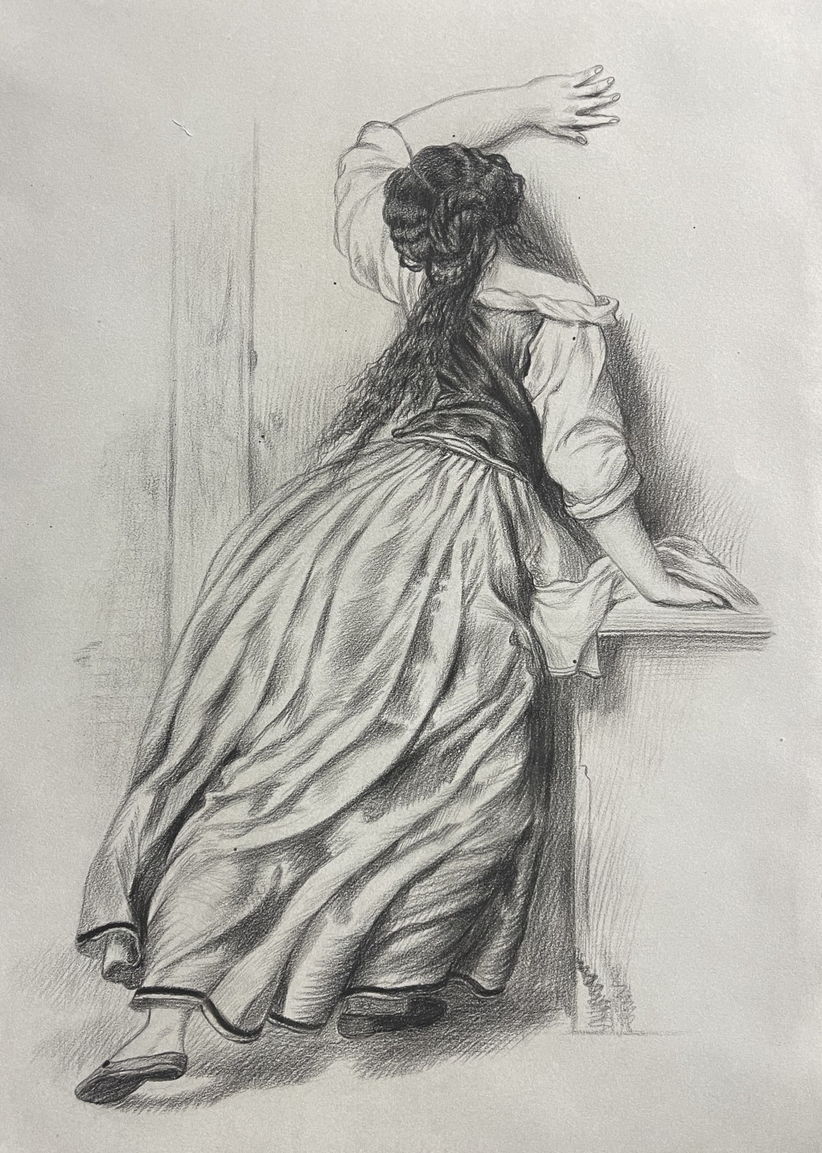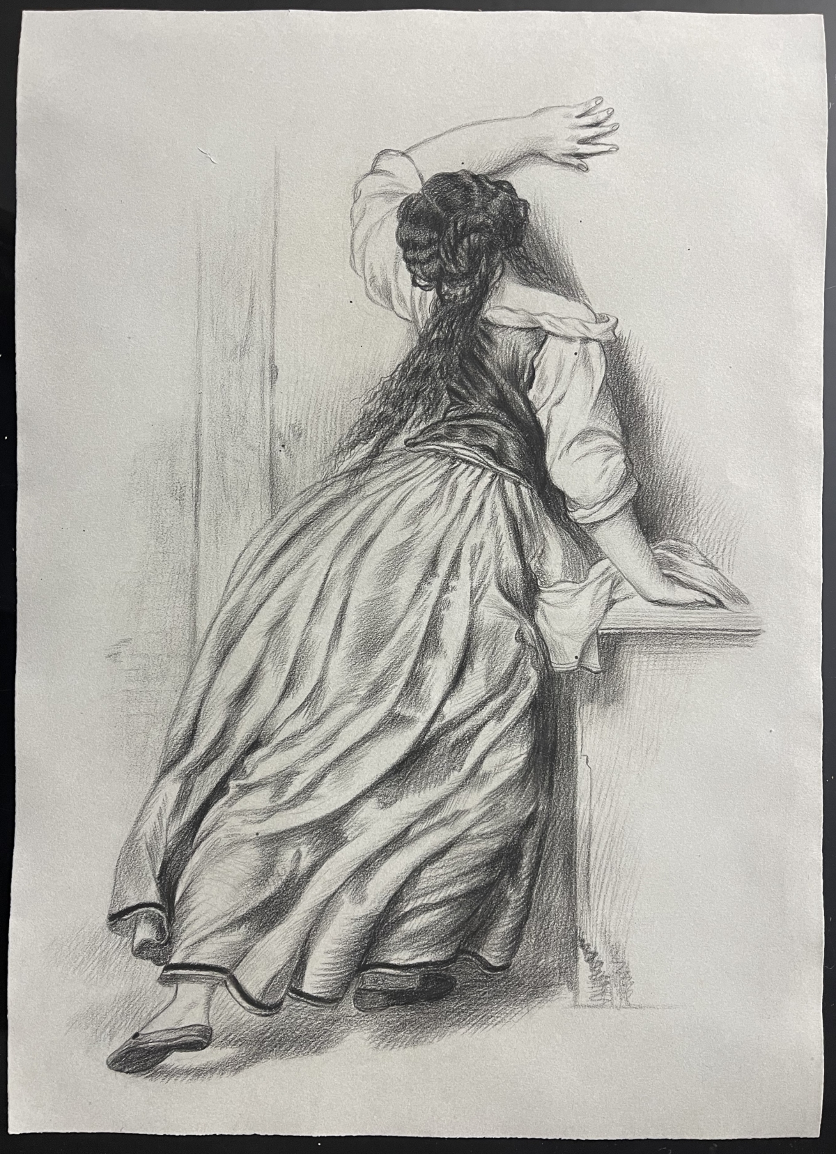Jeune femme en prière dessin Provence vers 1860 qualité